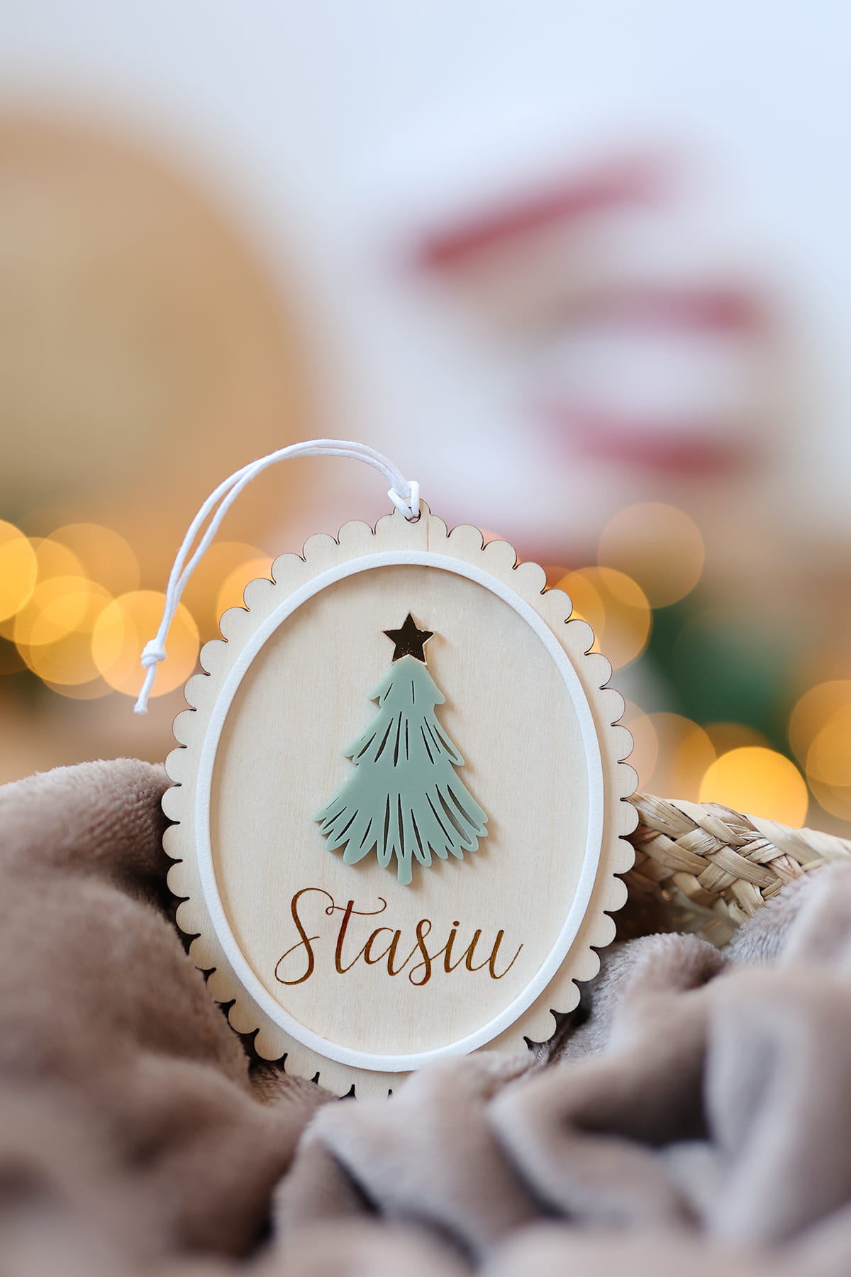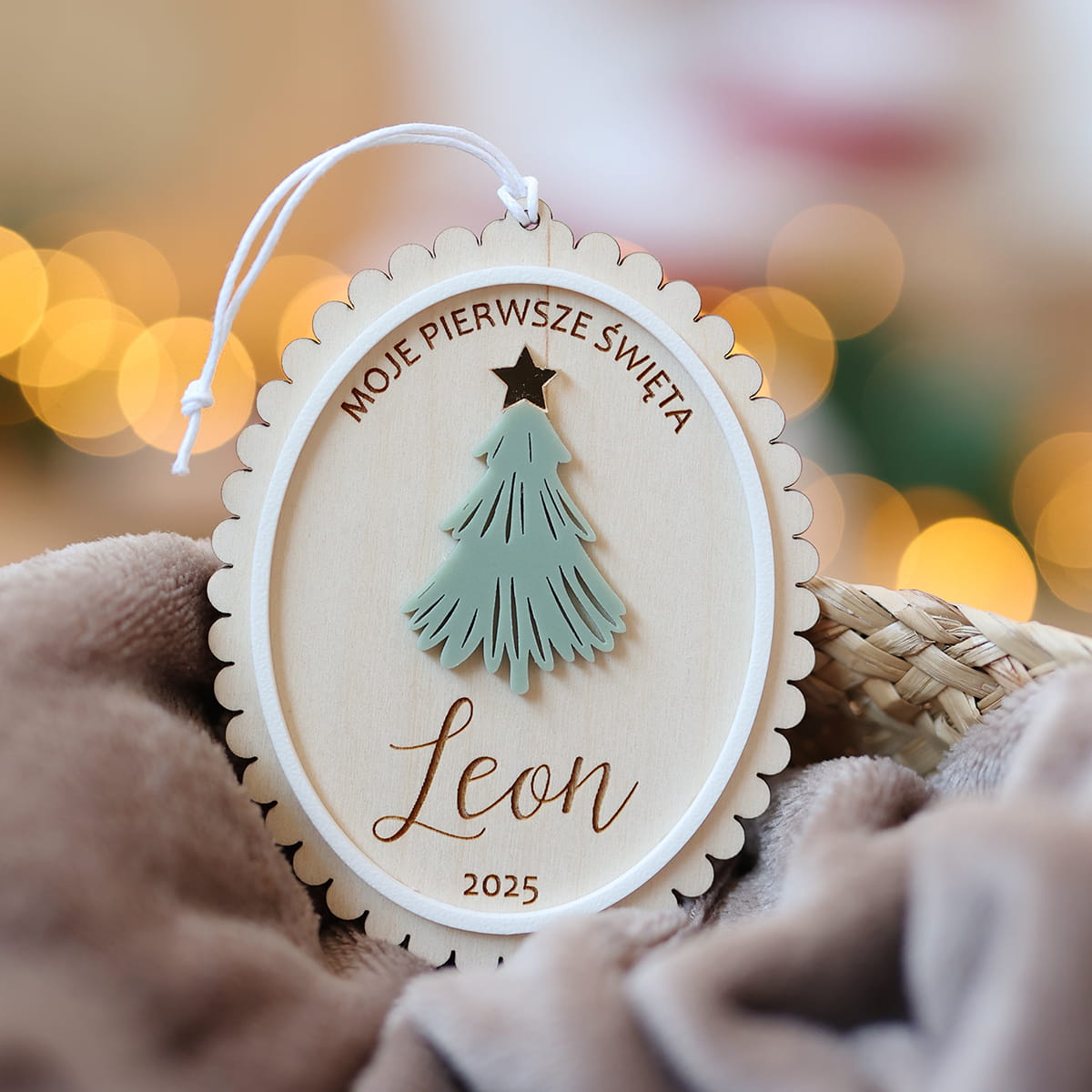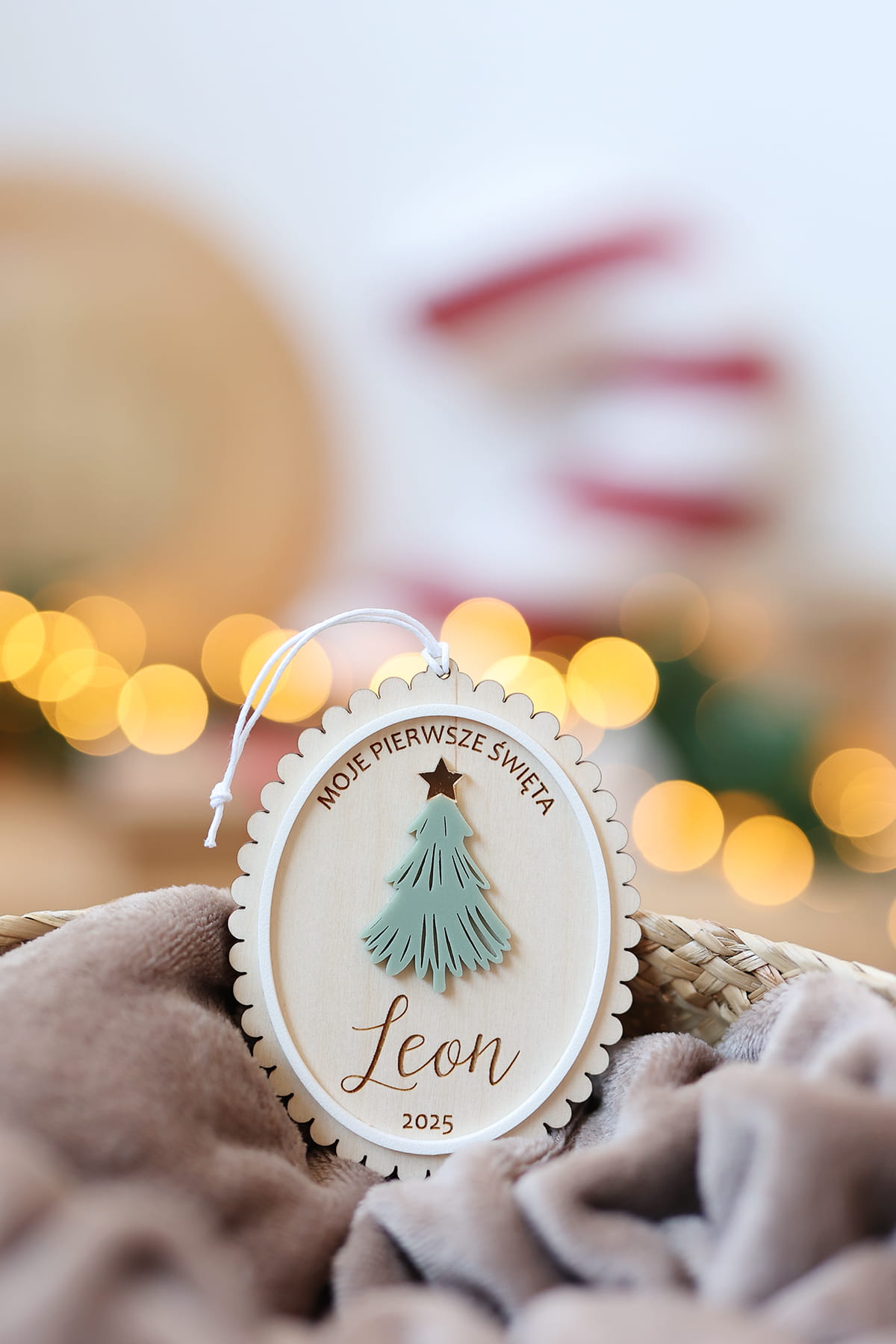 - wpisz w okienku personalizację, która ma się znaleźć na bombce, na przykład: "Moje pierwsze święta / Lilianna" lub "Pierwsze Święta Luizy, 2024" lub samo imię.