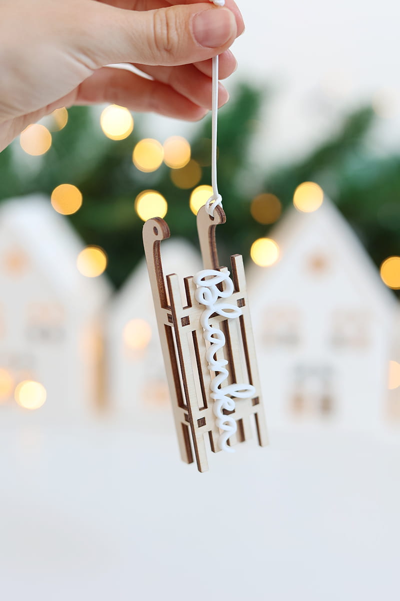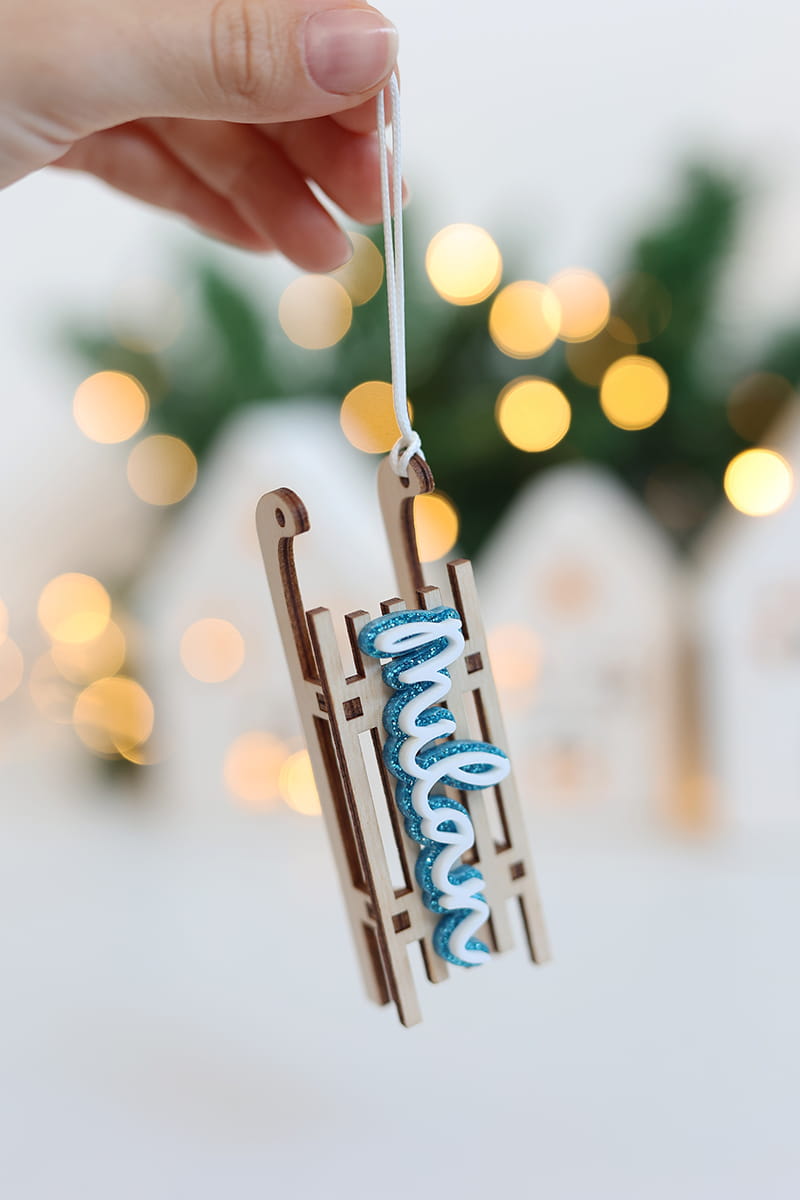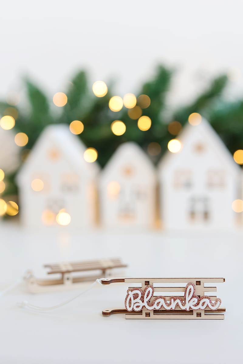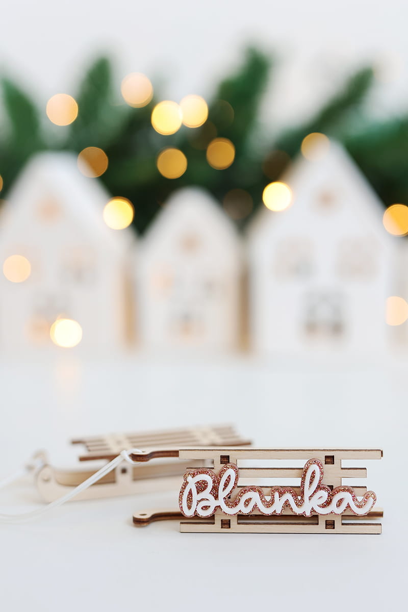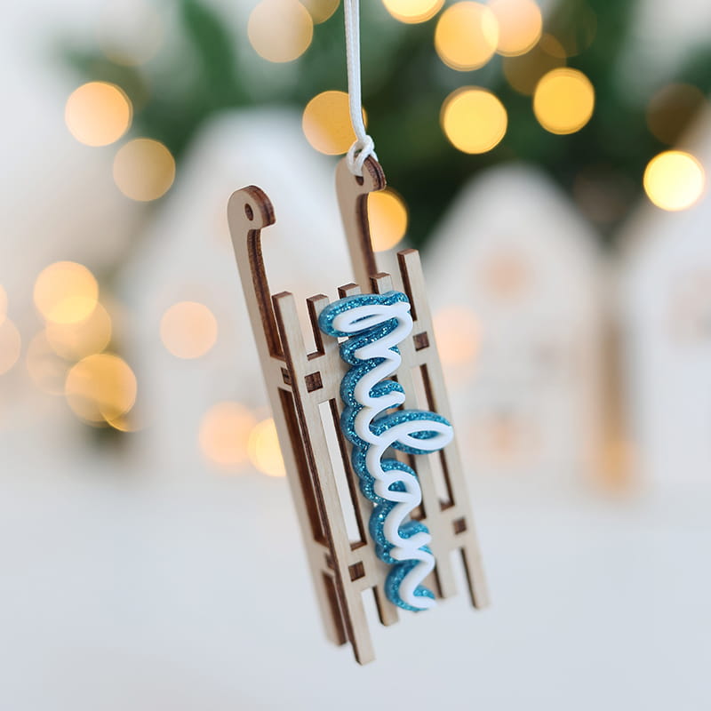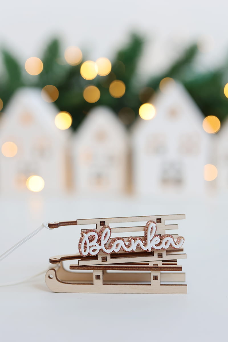 Bombka w kształcie sanek z wybranym imieniem w jednym z trzech wariantów kolorystycznych.