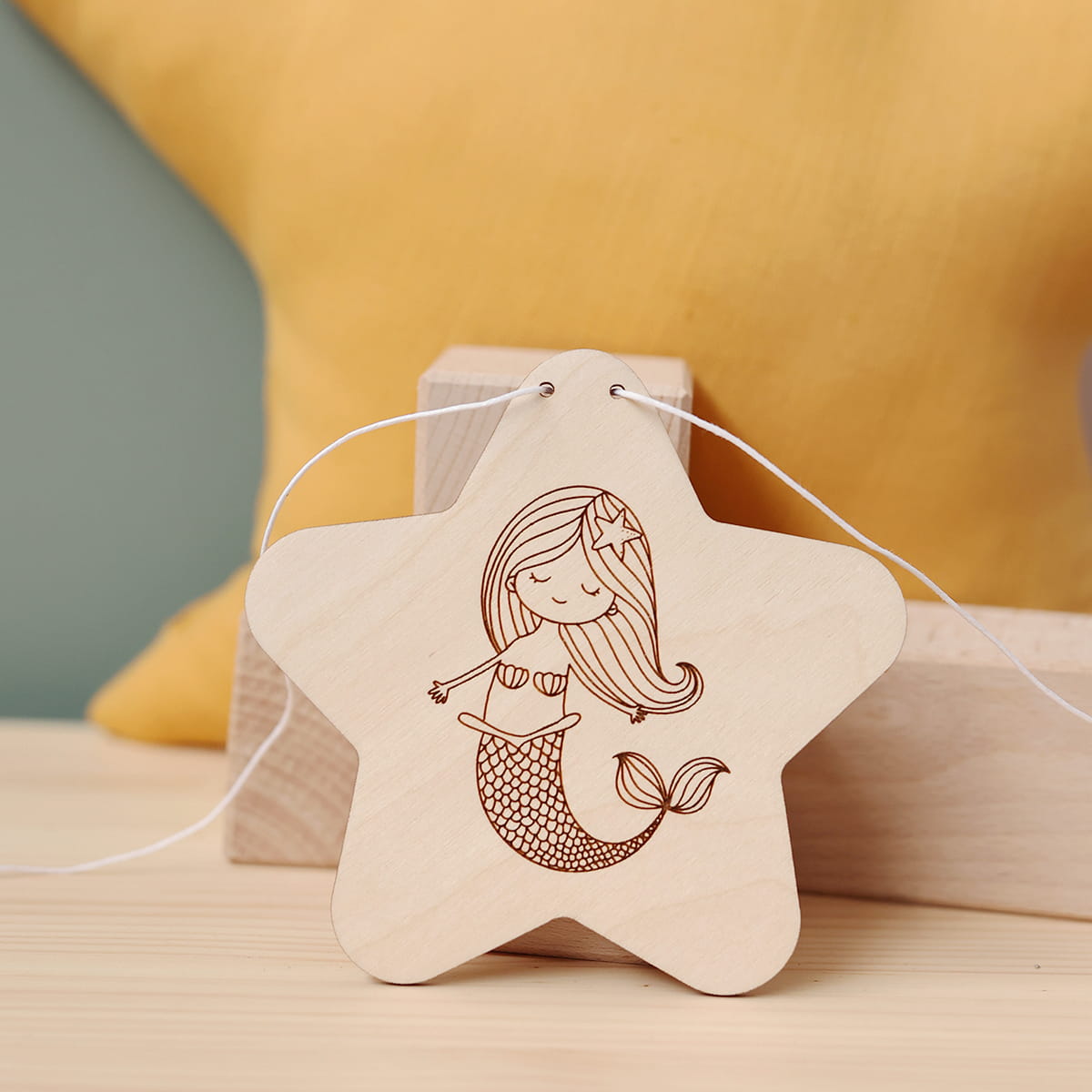 Dekor do girlandy z gwiazdek z motywem syrenki.