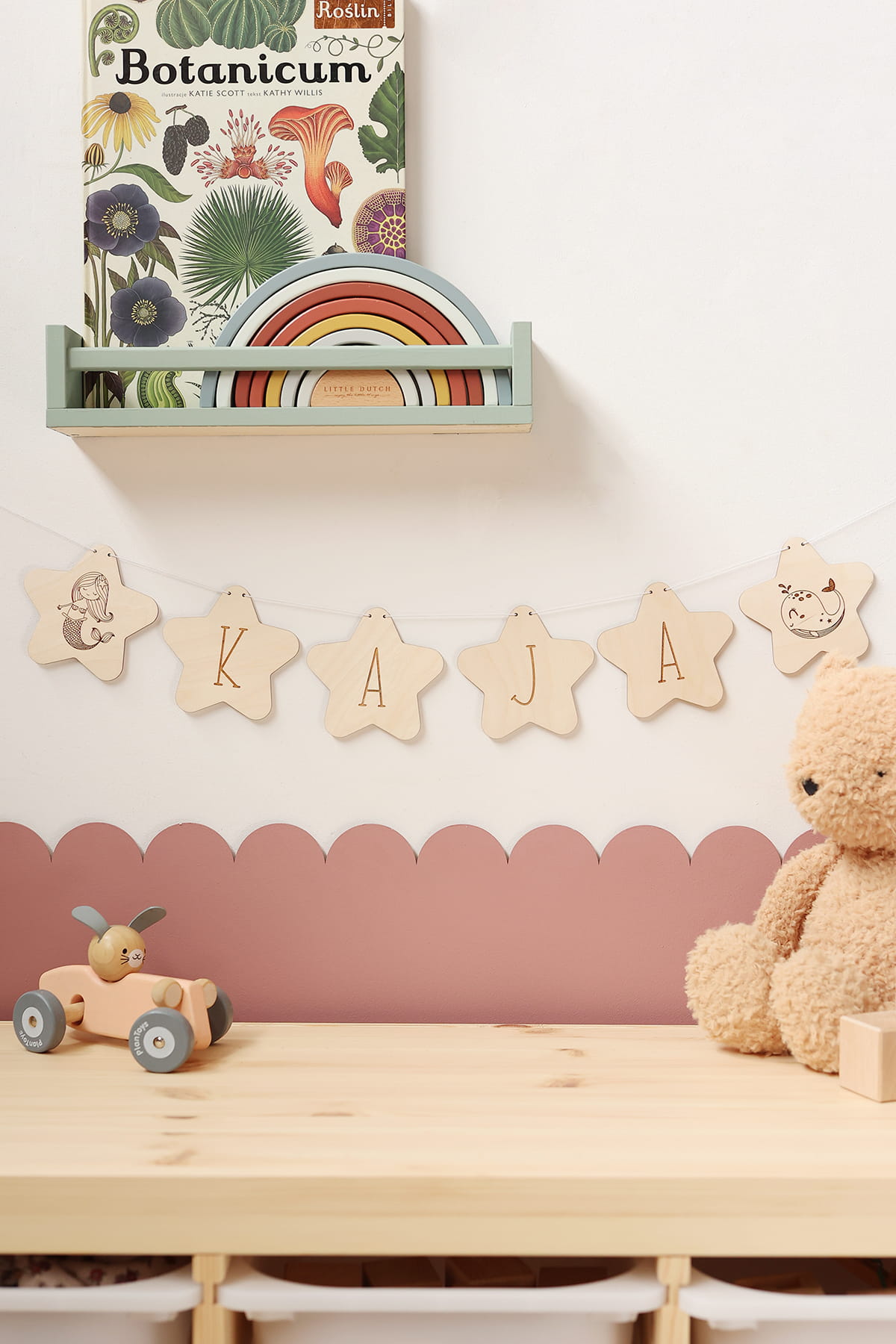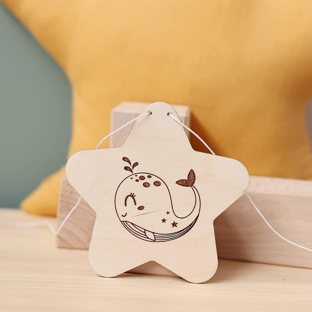 Dekor do girlandy z gwiazdek z motywem wieloryba.