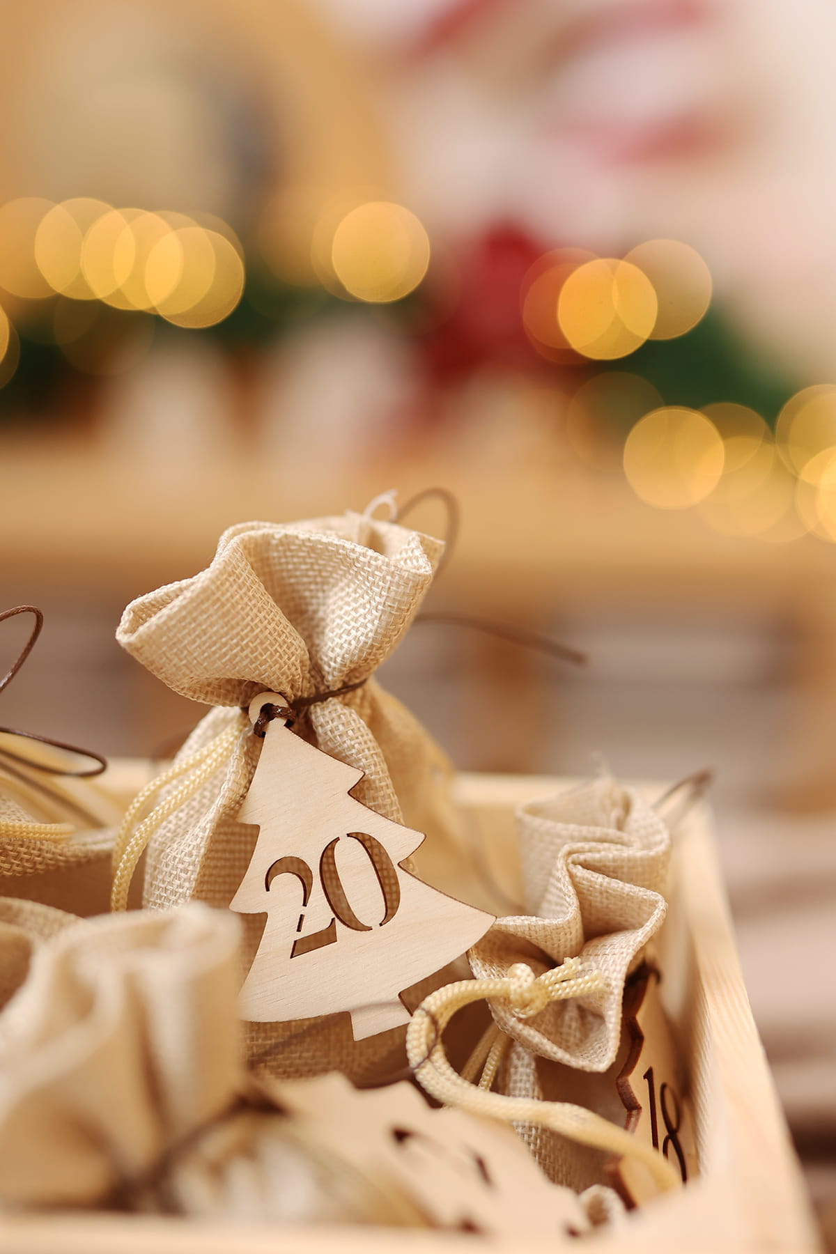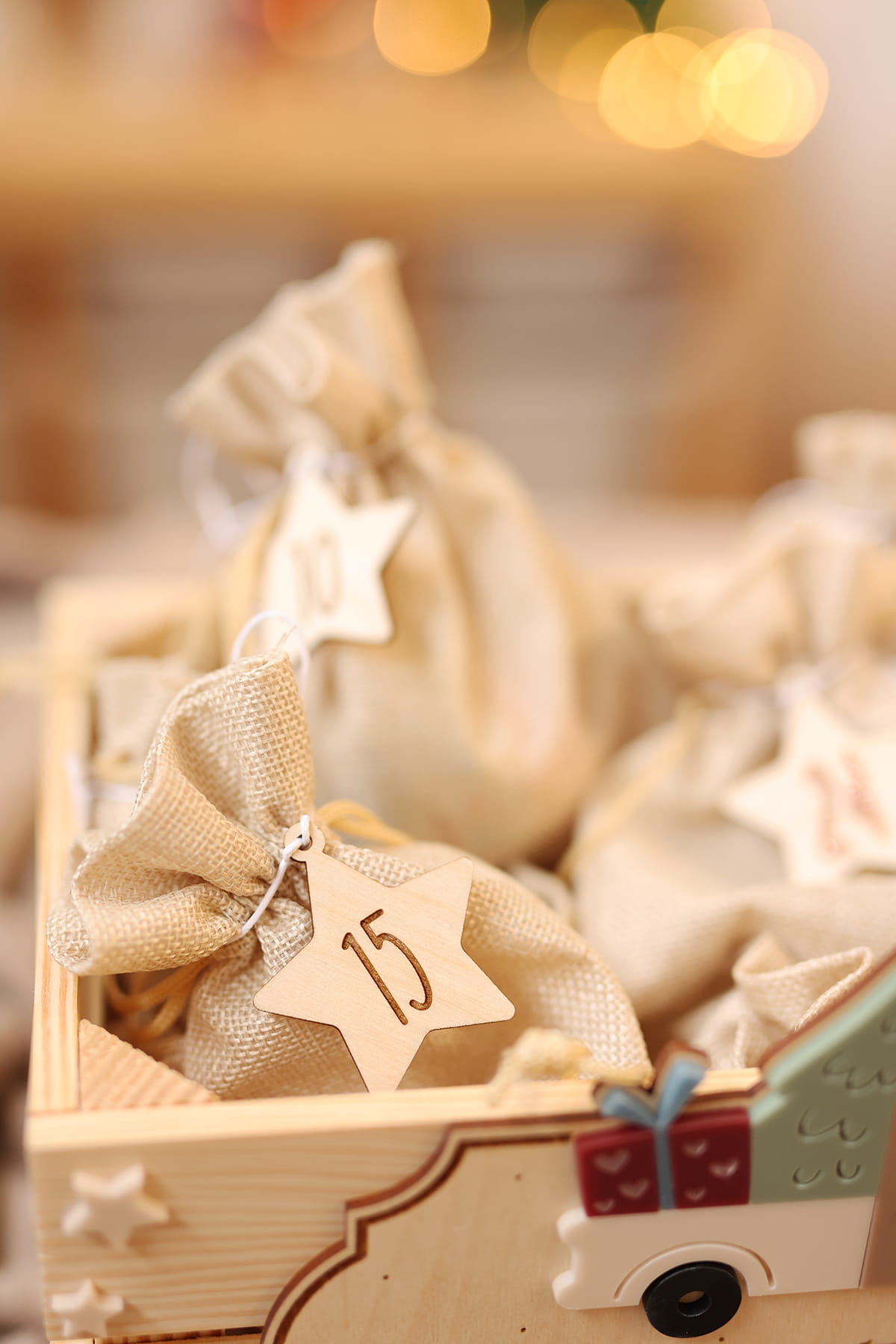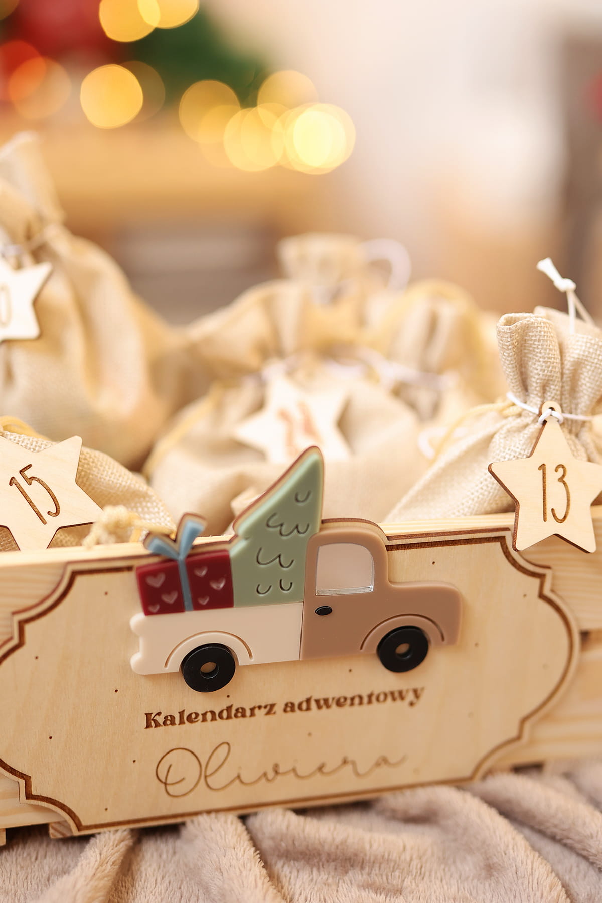- wybierz opcję kalendarza: sama skrzynia, skrzynia + 24 woreczki lub skrzynia + 24 woreczki + zawieszki choinki lub skrzynia + 24 woreczki + zawieszki gwiazdki;