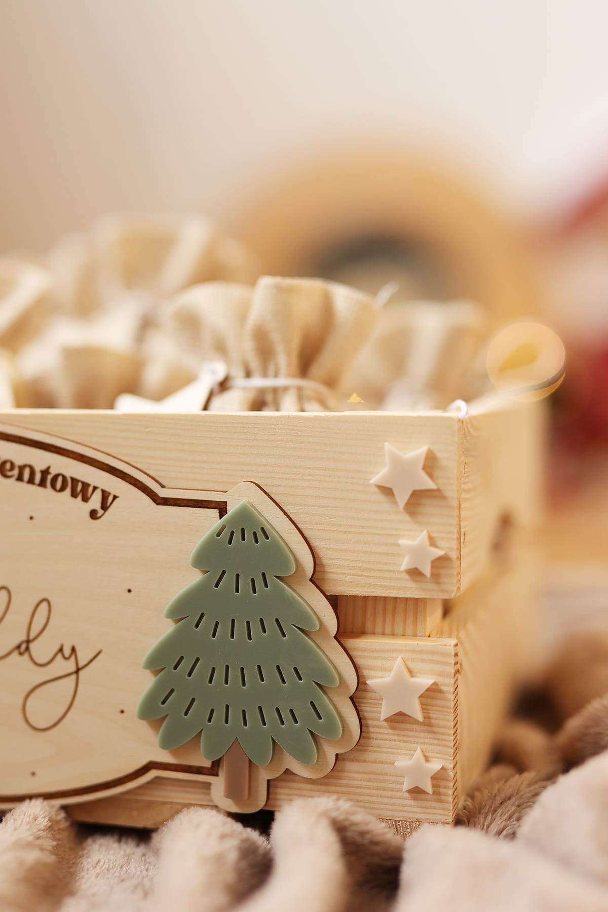 - wybierz opcję kalendarza: sama skrzynia, skrzynia + 24 woreczki lub skrzynia + 24 woreczki + zawieszki choinki lub skrzynia + 24 woreczki + zawieszki gwiazdki;