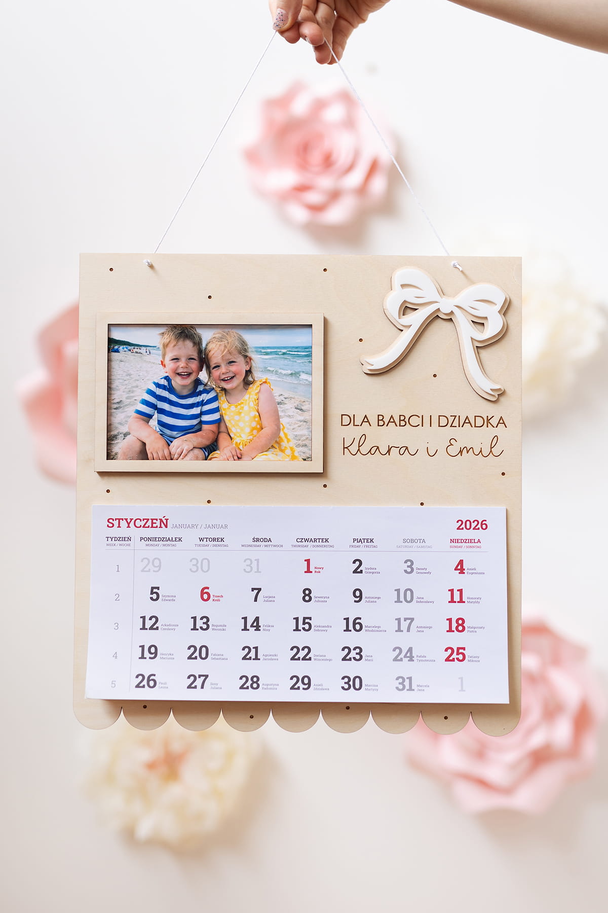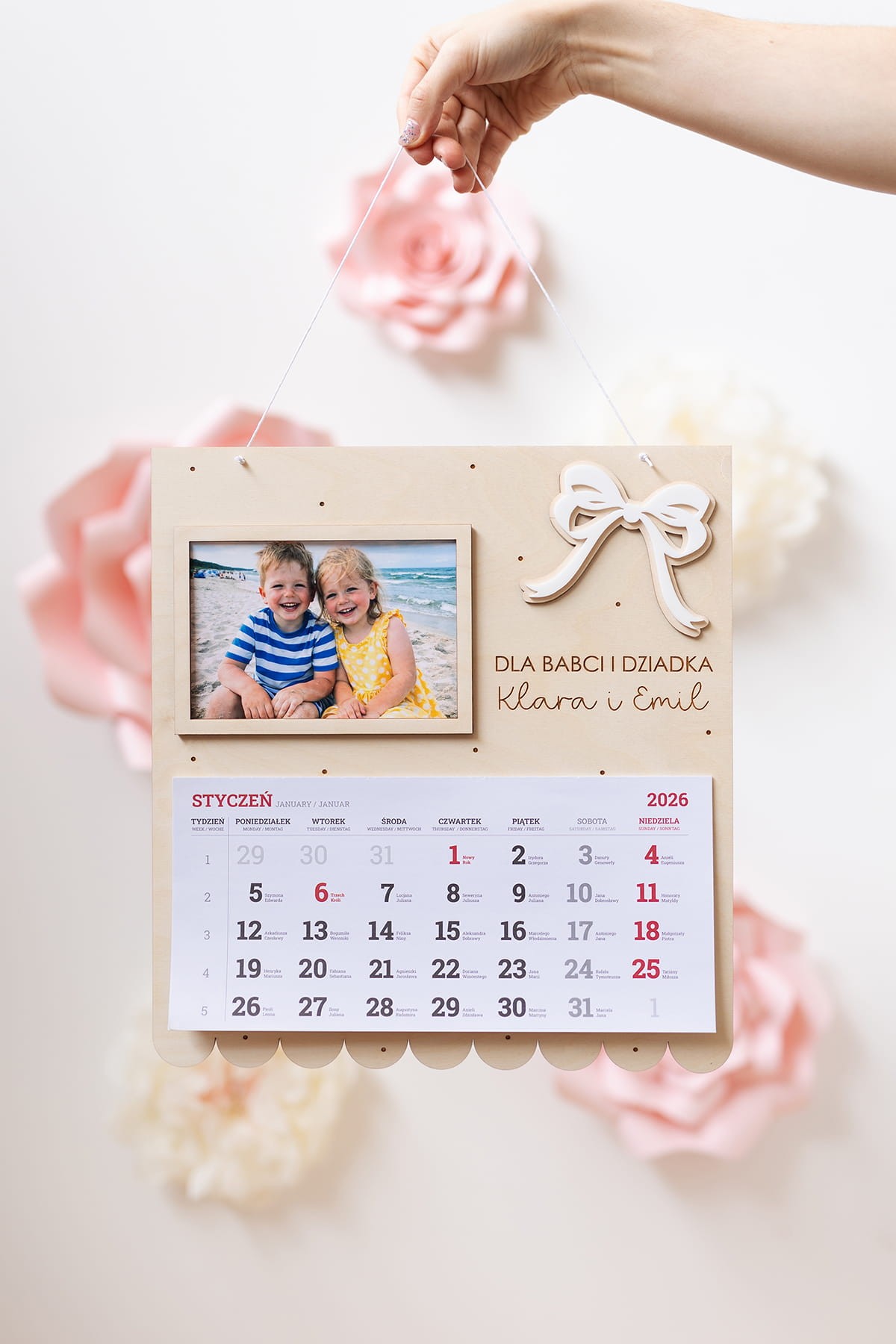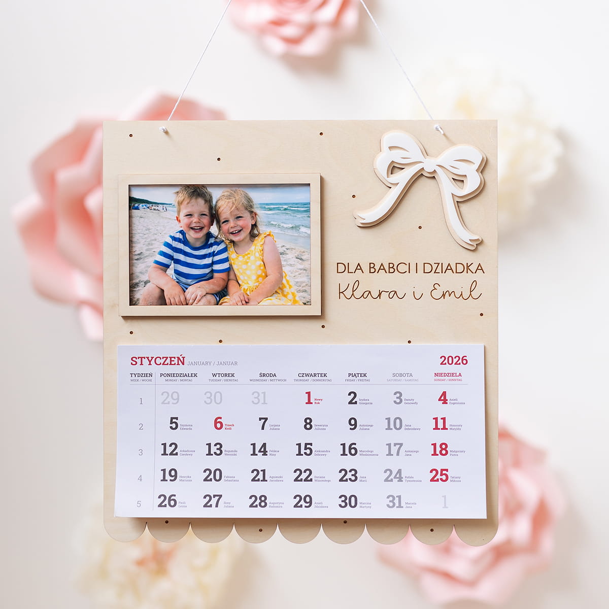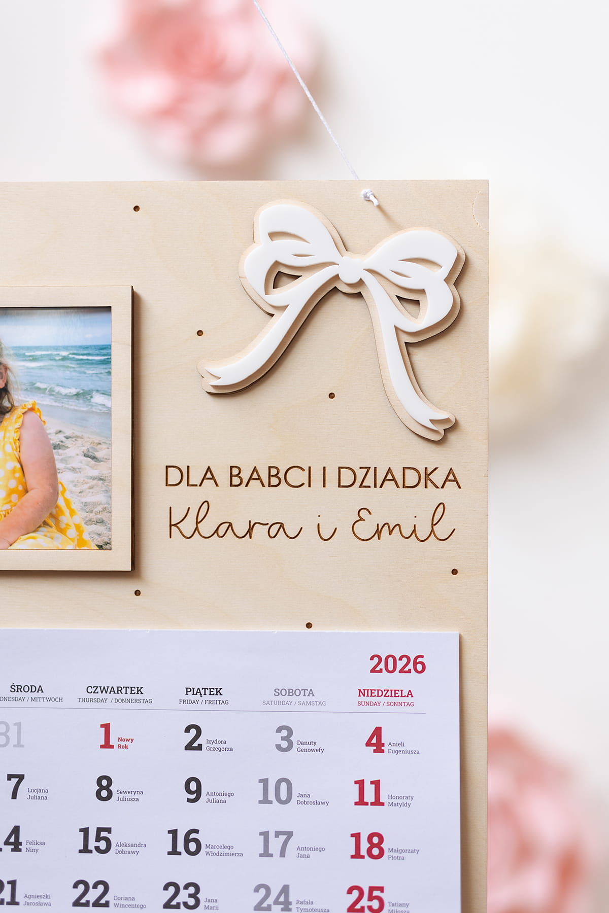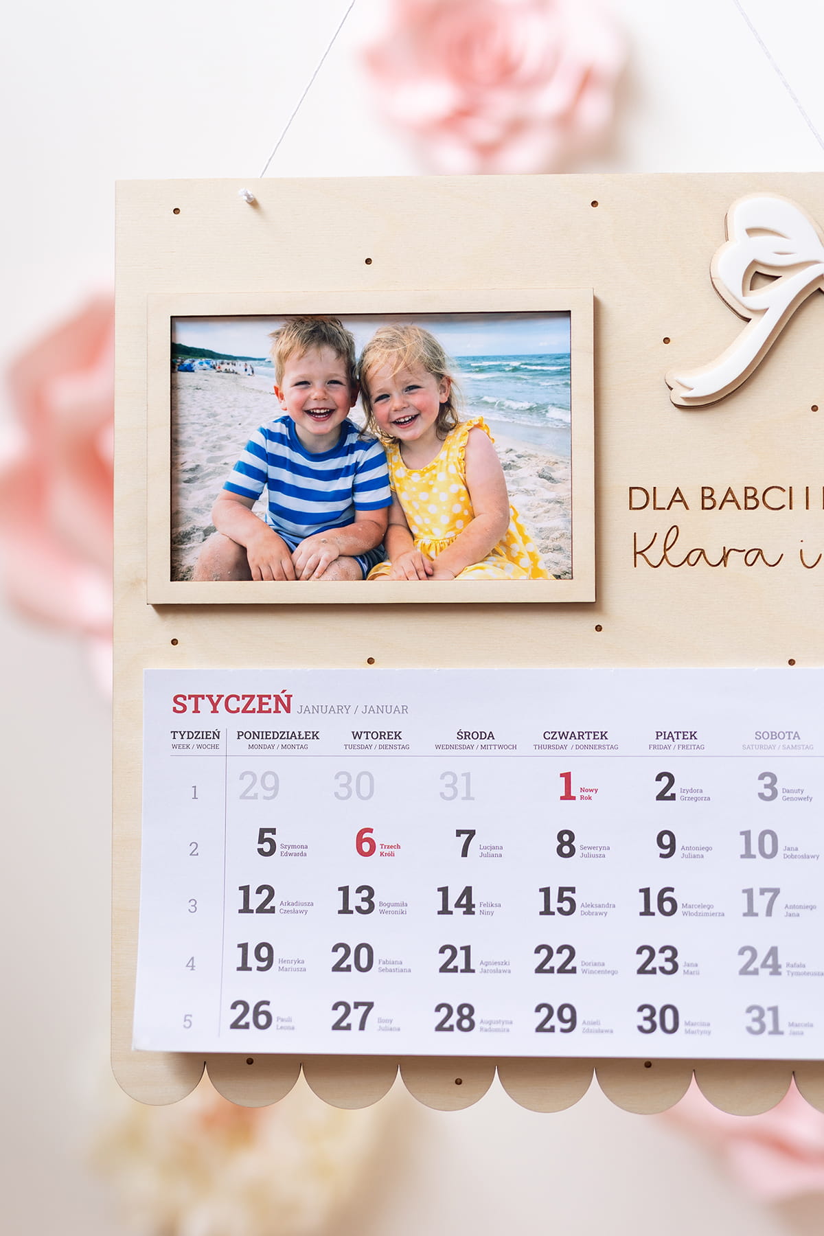 Wyjątkowy, duży drewniany kalendarz stworzony z myślą o dniu Babci i Dziadka.