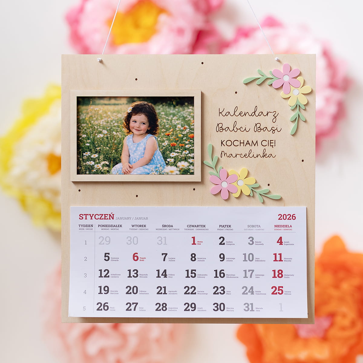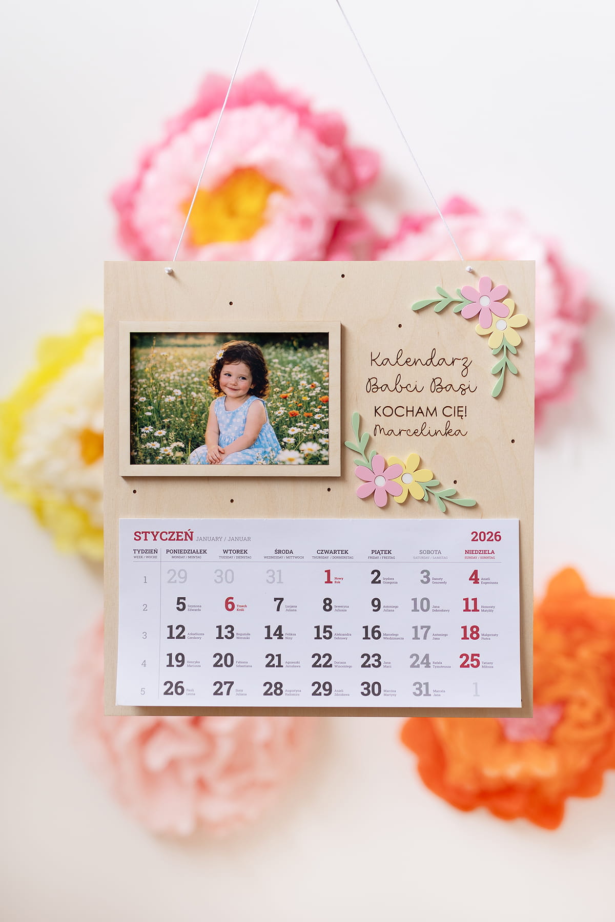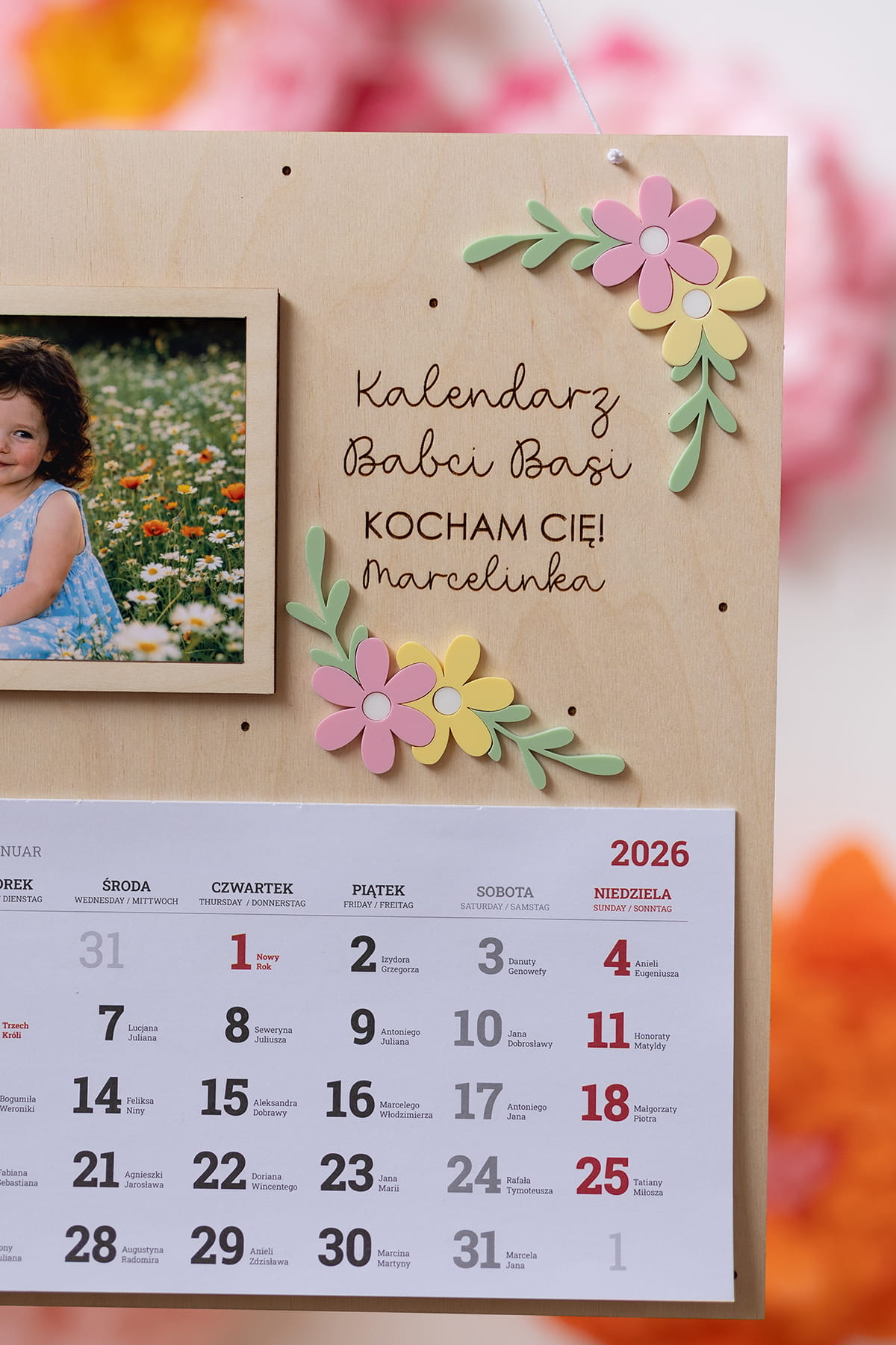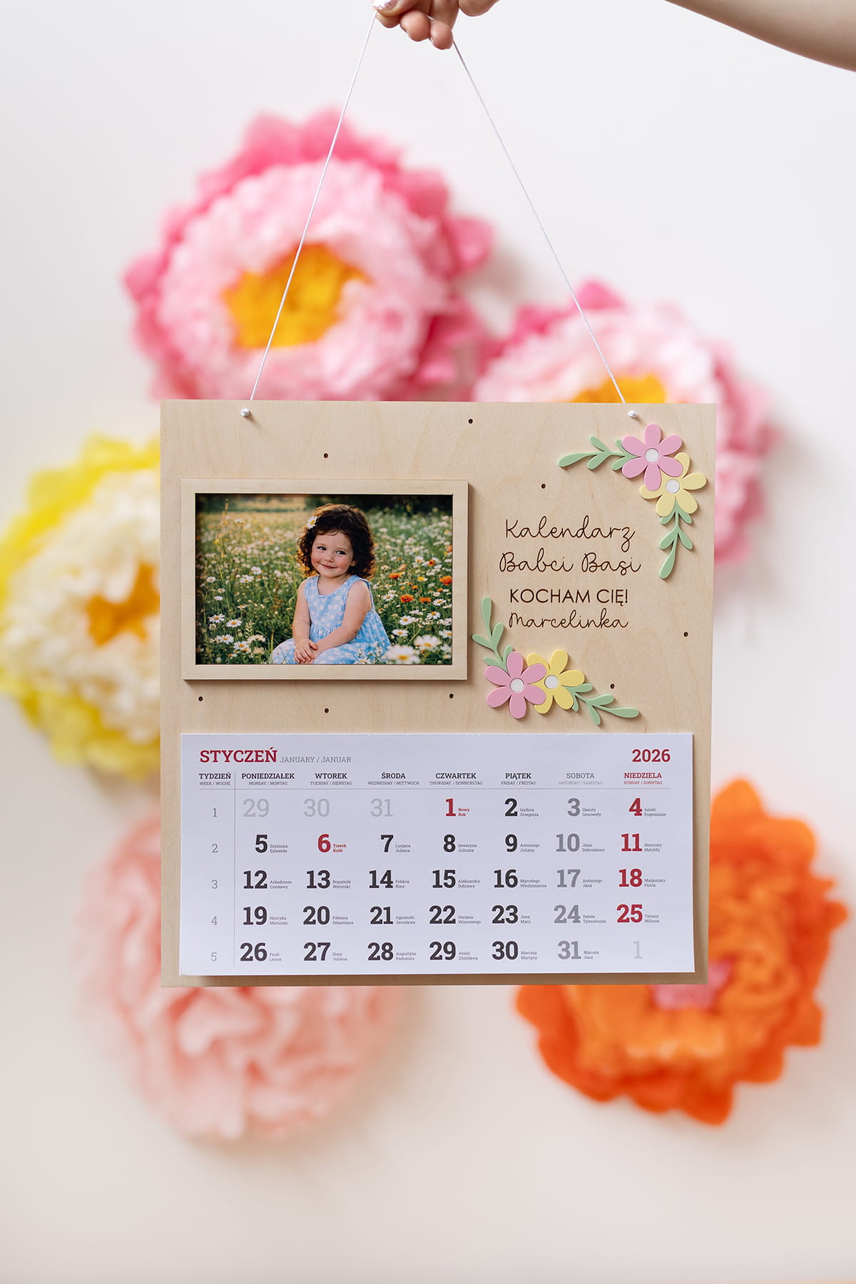 Wyjątkowy, duży drewniany kalendarz stworzony z myślą o dniu Babci i Dziadka.