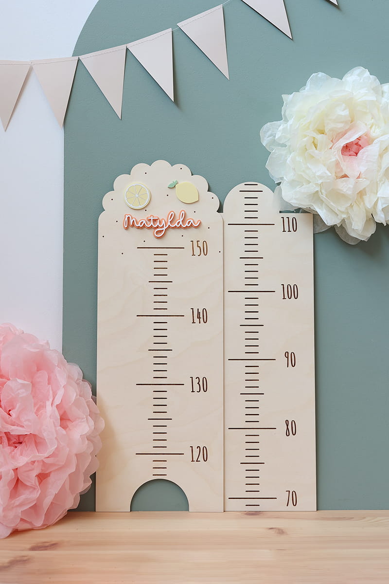 Ta urocza drewniana miarka wzrostu to idealny sposób na połączenie funkcjonalności z dekoracyjnym akcentem w pokoju Twojego dziecka. Miarka pozwala na łatwe zaznaczanie wzrostu malucha na różnych etapach jego życia.