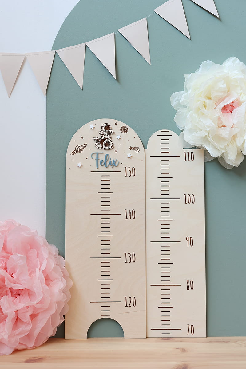 Ta urocza drewniana miarka wzrostu to idealny sposób na połączenie funkcjonalności z dekoracyjnym akcentem w pokoju Twojego dziecka. Miarka pozwala na łatwe zaznaczanie wzrostu malucha na różnych etapach jego życia.
