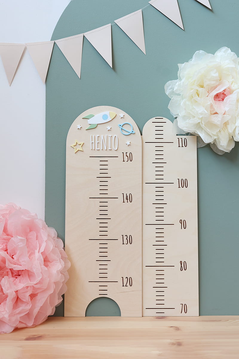 Ta urocza drewniana miarka wzrostu to idealny sposób na połączenie funkcjonalności z dekoracyjnym akcentem w pokoju Twojego dziecka. Miarka pozwala na łatwe zaznaczanie wzrostu malucha na różnych etapach jego życia.