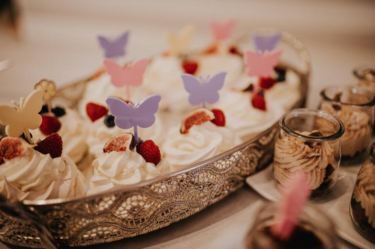 W przypadku umieszczania dekoracji w torcie zaleca się zabezpieczenie części wkładanej w wypiek (np. za pomocą słomki, rurki, folii spożywczej lub innej osłony).