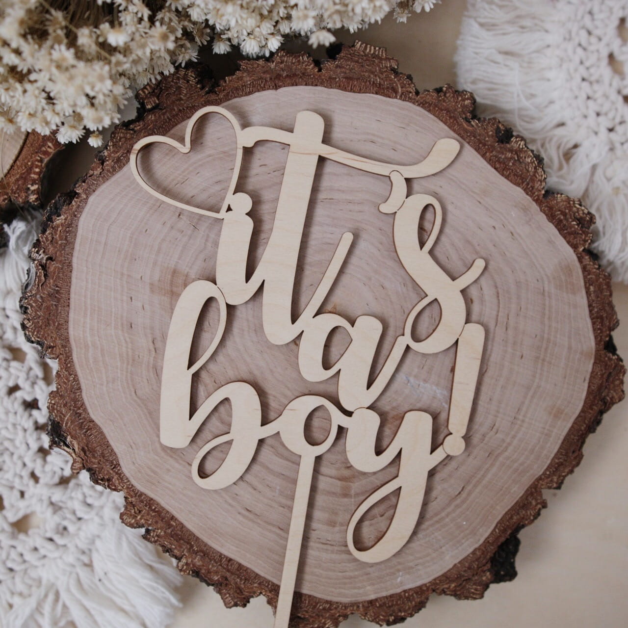 Drewniany topper z napisem "It's a boy!"