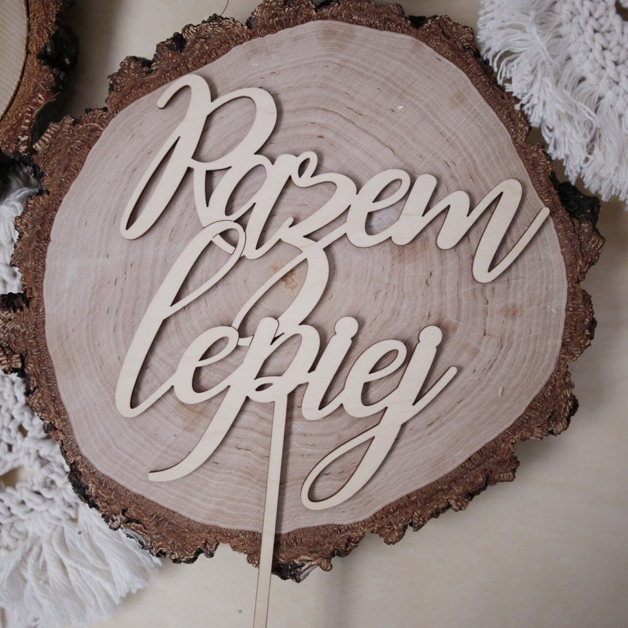 Drewniany topper z napisem "Razem lepiej"