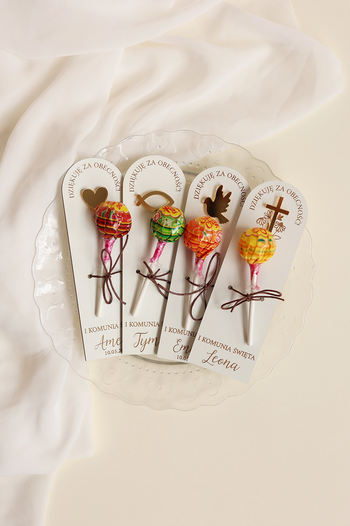 Wykonane z płyty HDF (dwustronnie białej), idealnie sprawdzą się jako prezent oraz dekoracja stołu w wyjątkowym dniu - na chrzcie lub komunii.