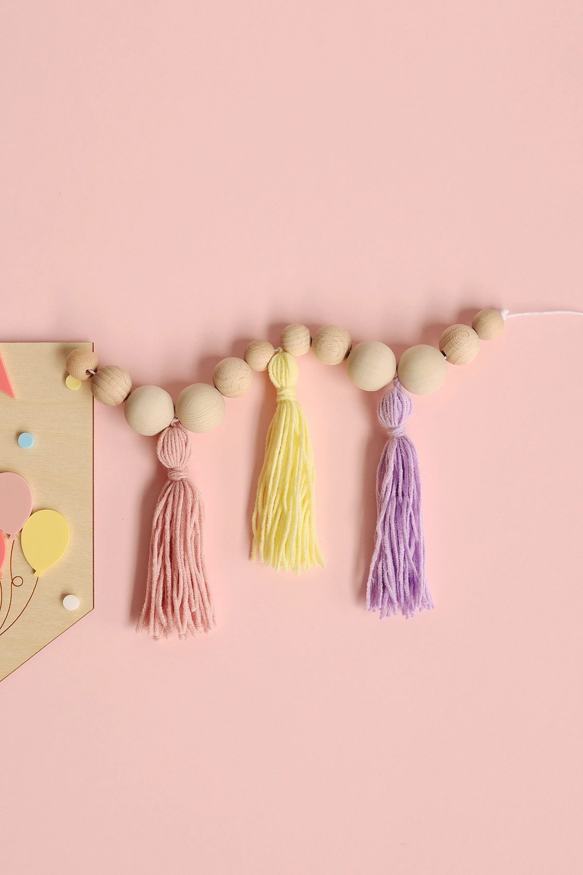 - Wybierz wersję dekoracji - sam proporczyk lub proporczyk z girlandą z chwostami i koralikami,