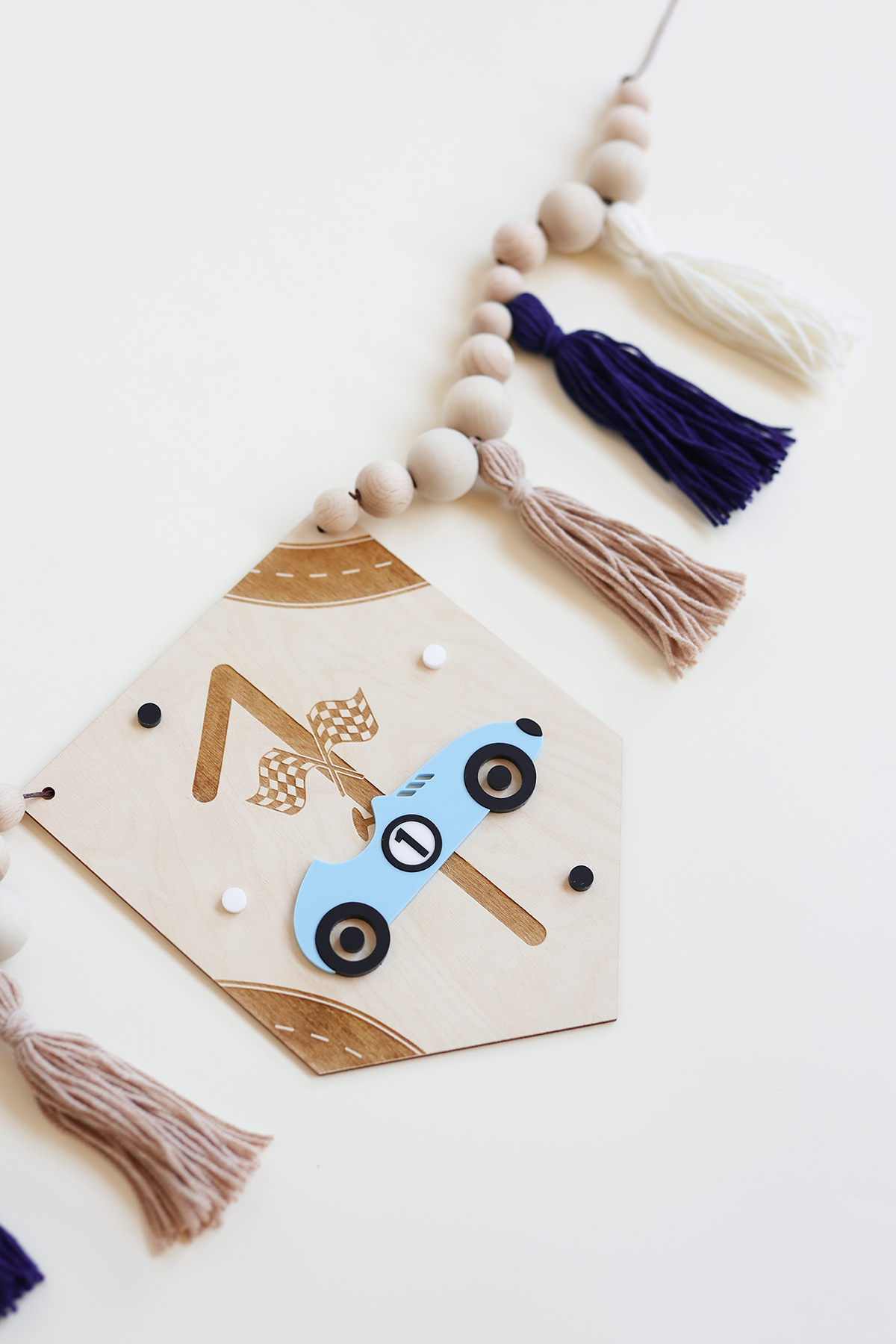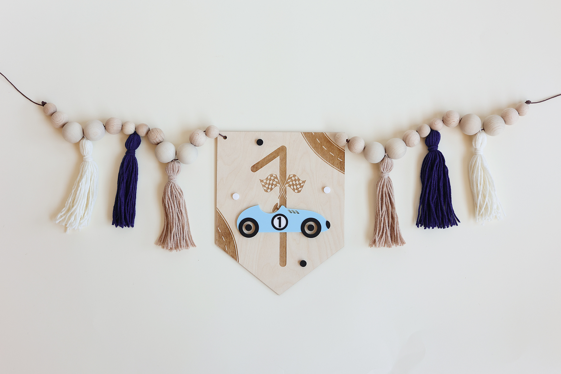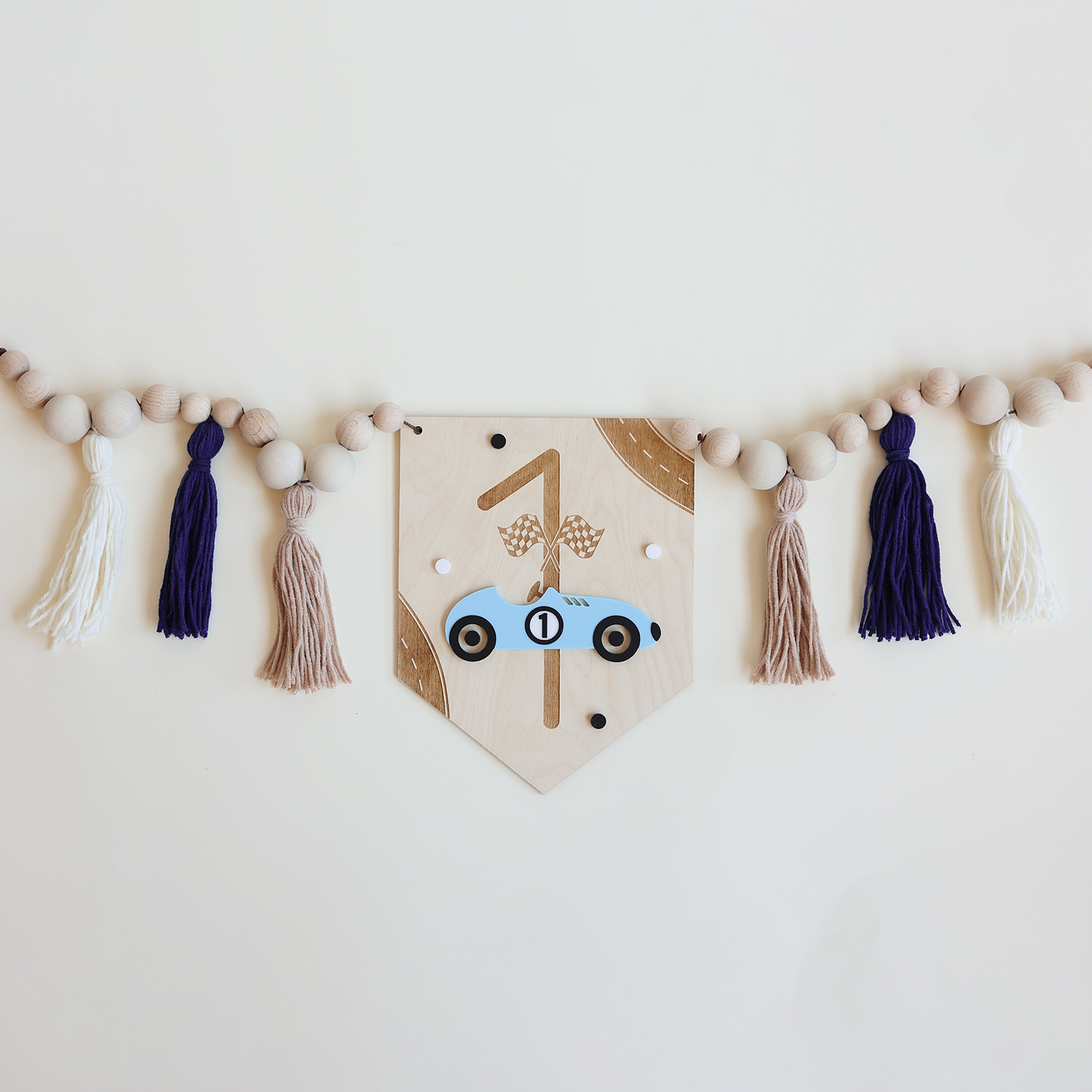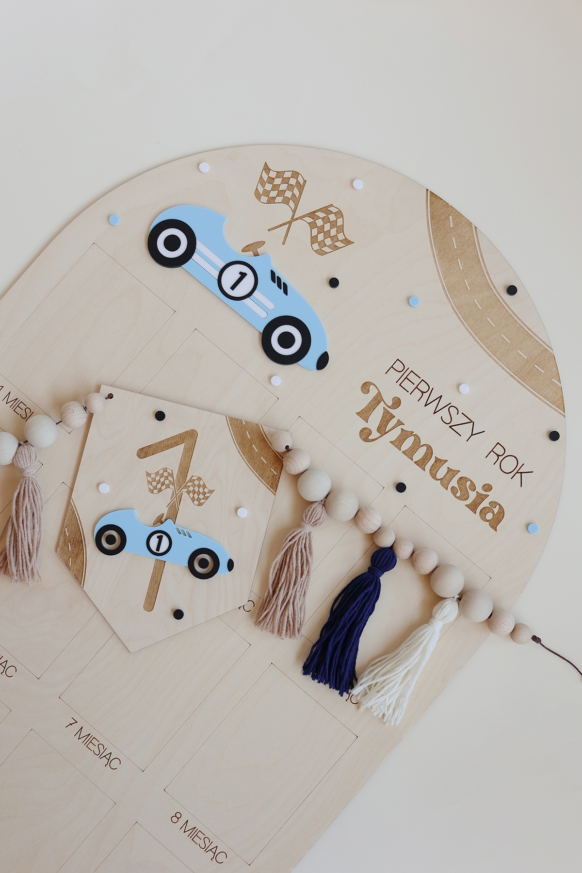 - Wybierz wersję dekoracji - sam proporczyk lub proporczyk z girlandą z chwostami i koralikami,