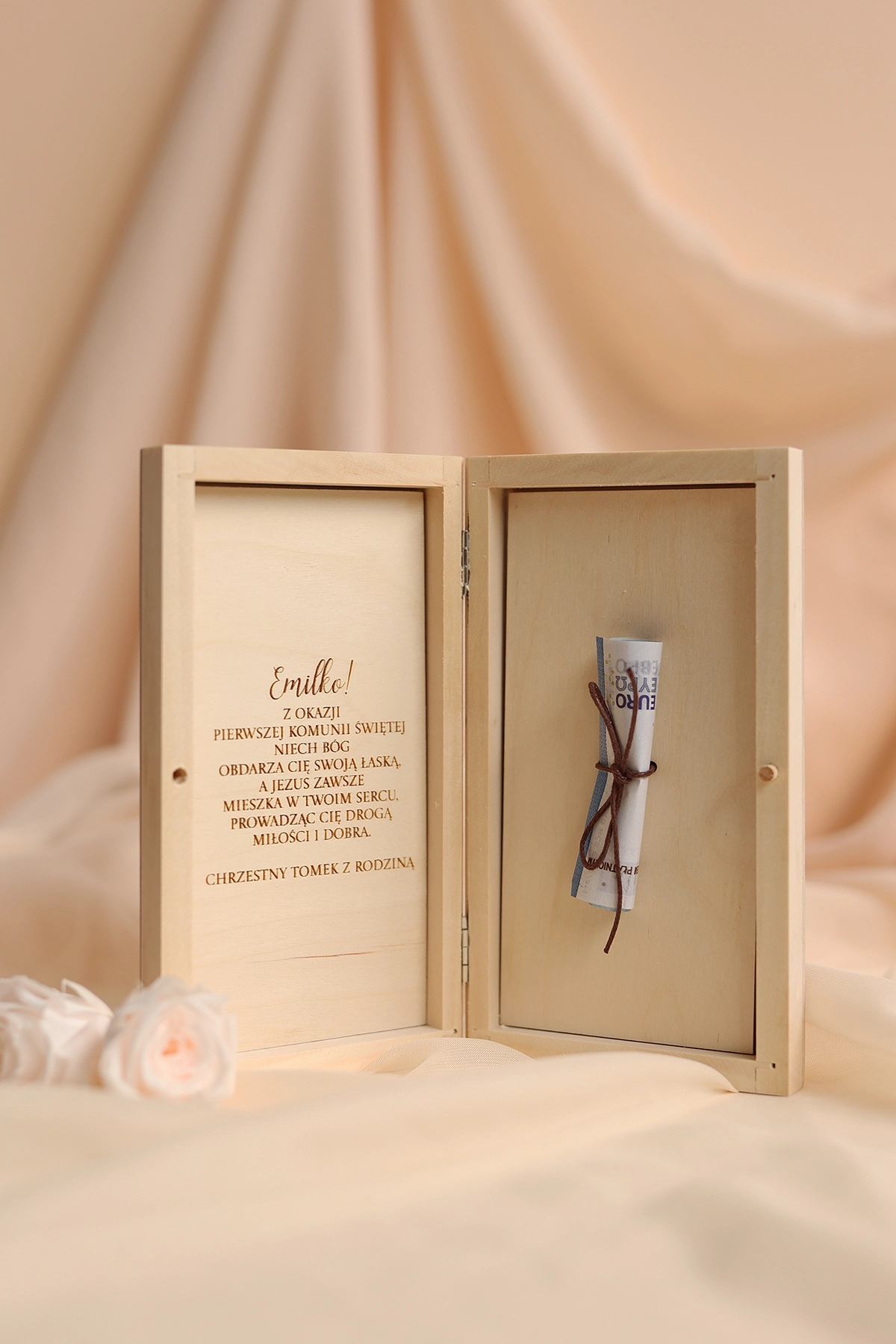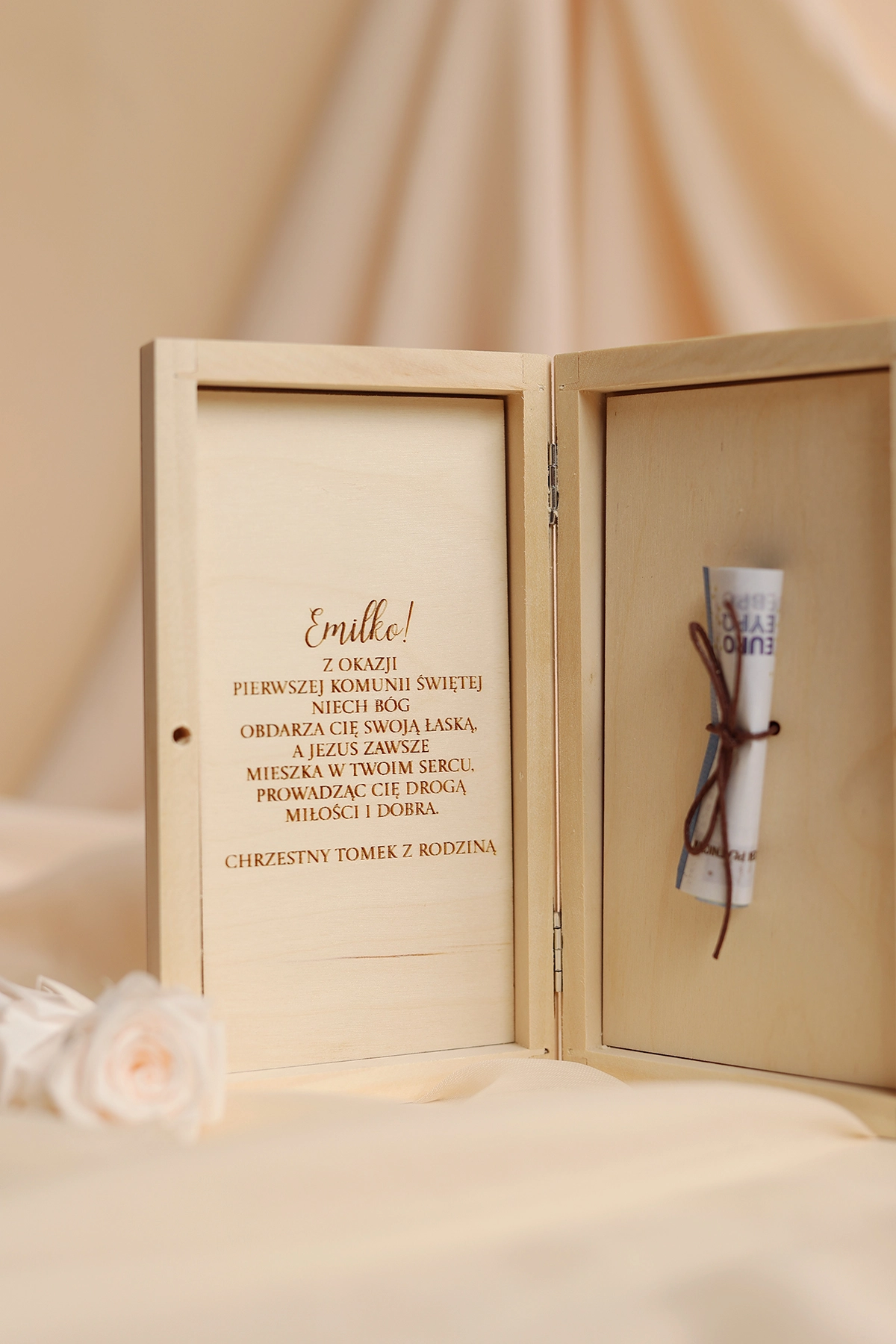 - treść na wieczko (np. imię, data, dedykacja)