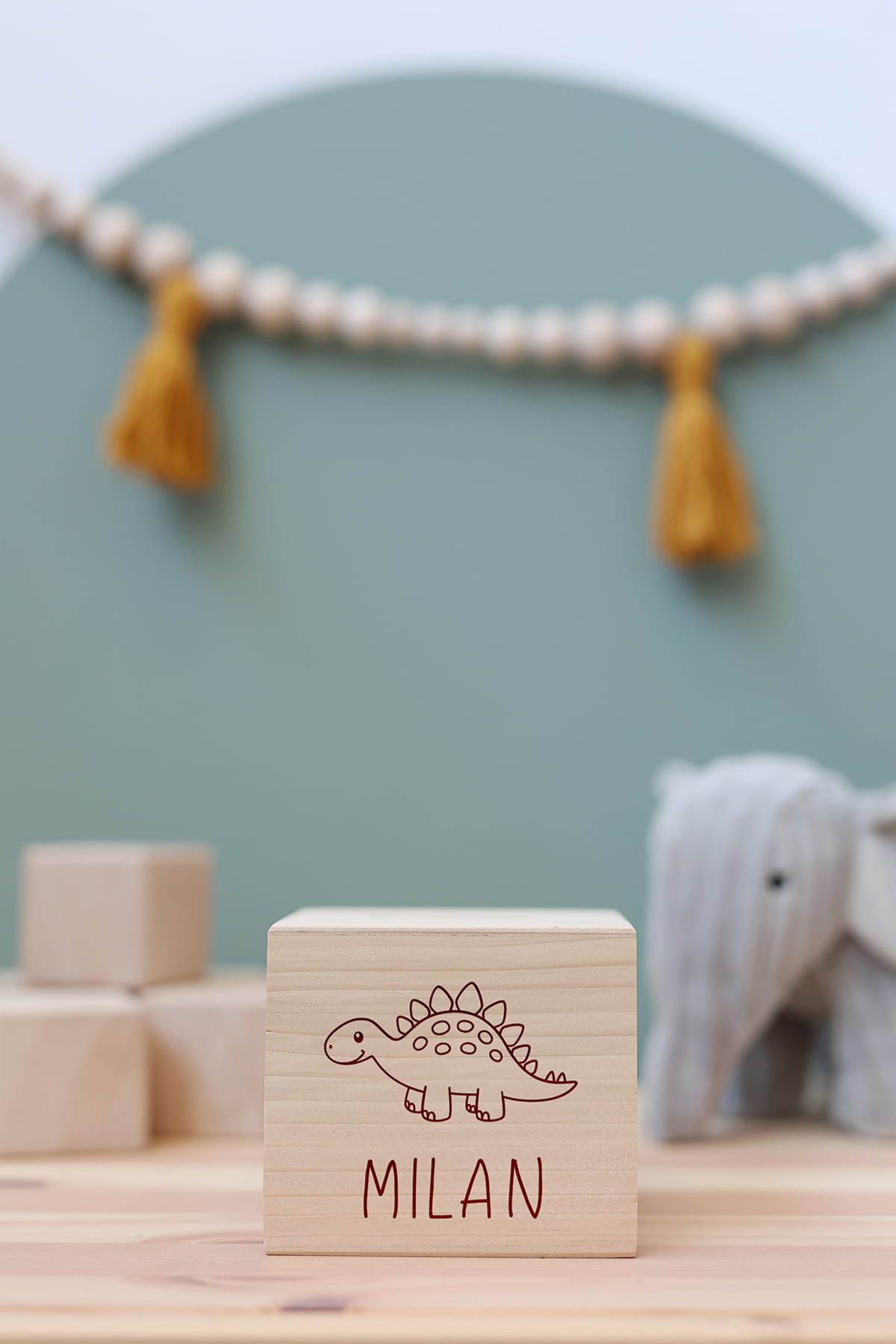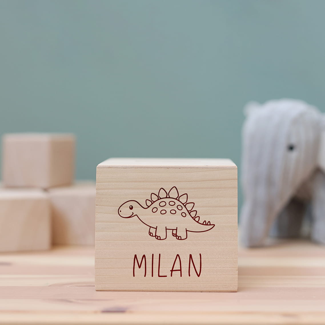 Drewniana skarbonka z motywem różowej dinozaura i dowolnym imieniem.