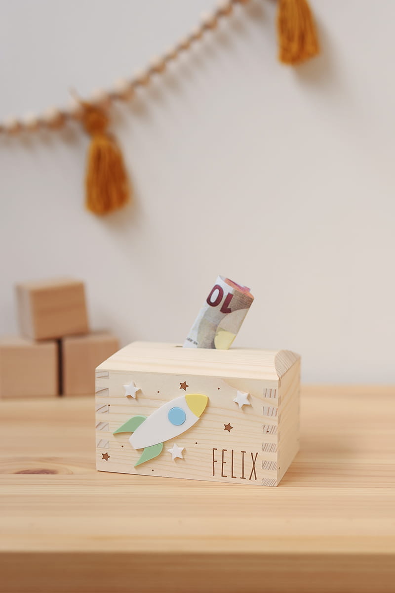 Skarbonka w kształcie kuferka to praktyczny i uroczy sposób na naukę oszczędzania. Dostępna w różnych kolorowych wzorach do wyboru, będzie nie tylko miejscem na pierwsze oszczędności, ale także piękną ozdobą dziecięcego pokoju.