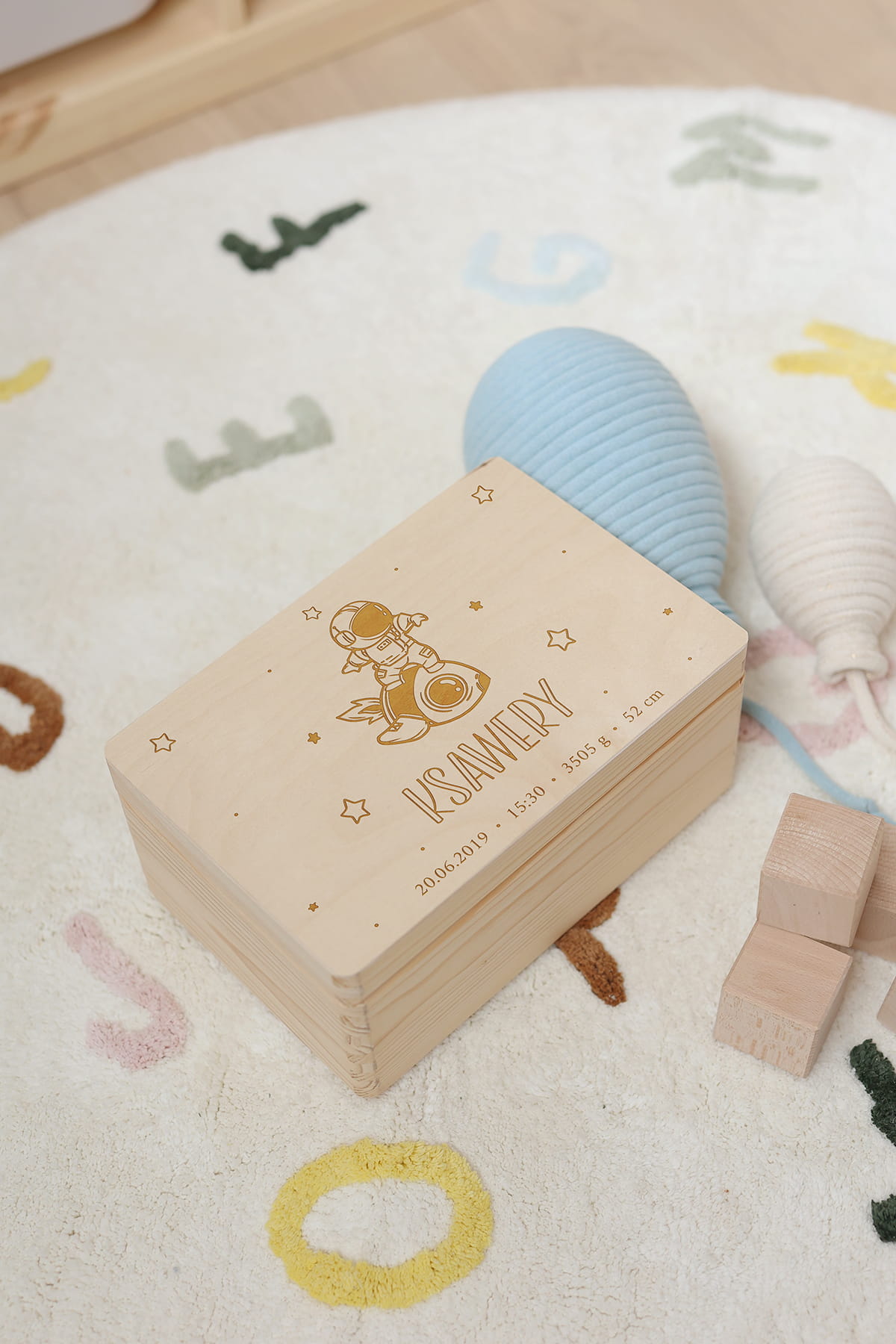 Skrzynia na skarby z motywem kosmonauty.
