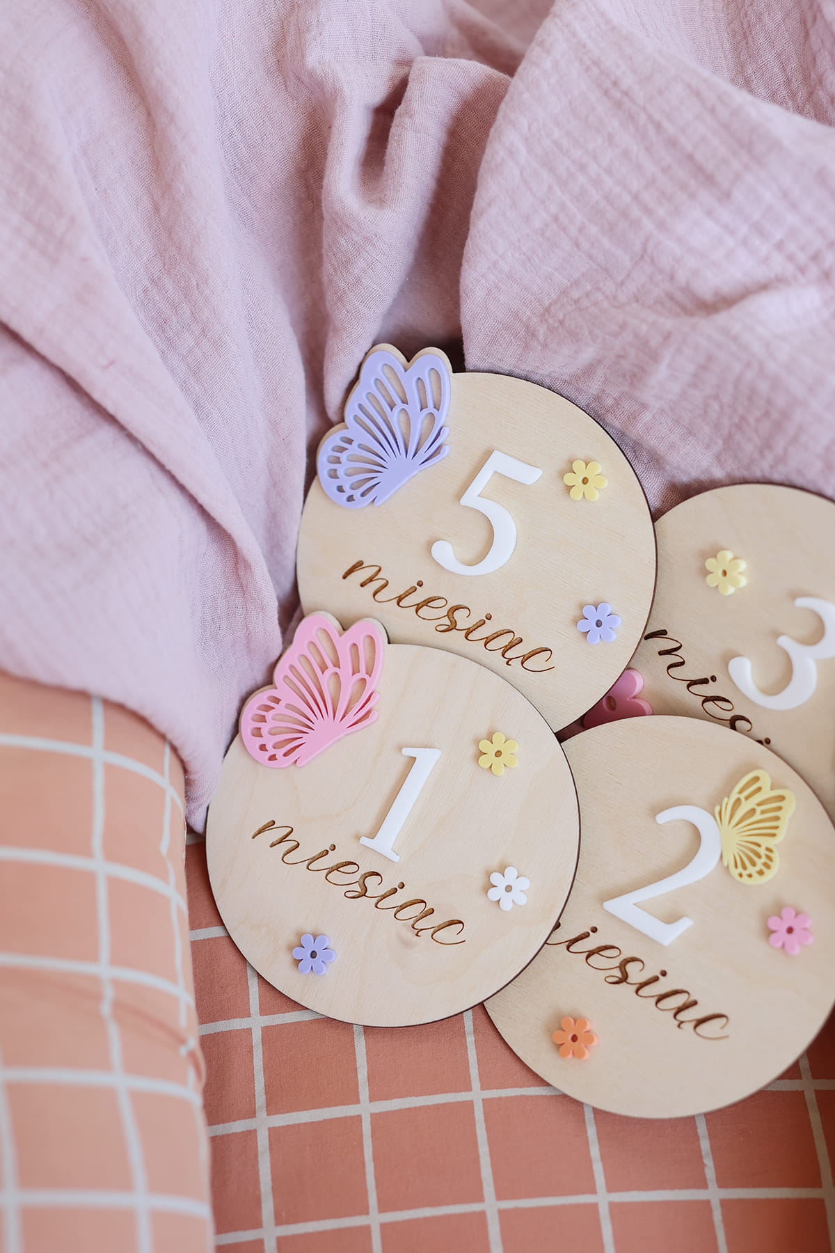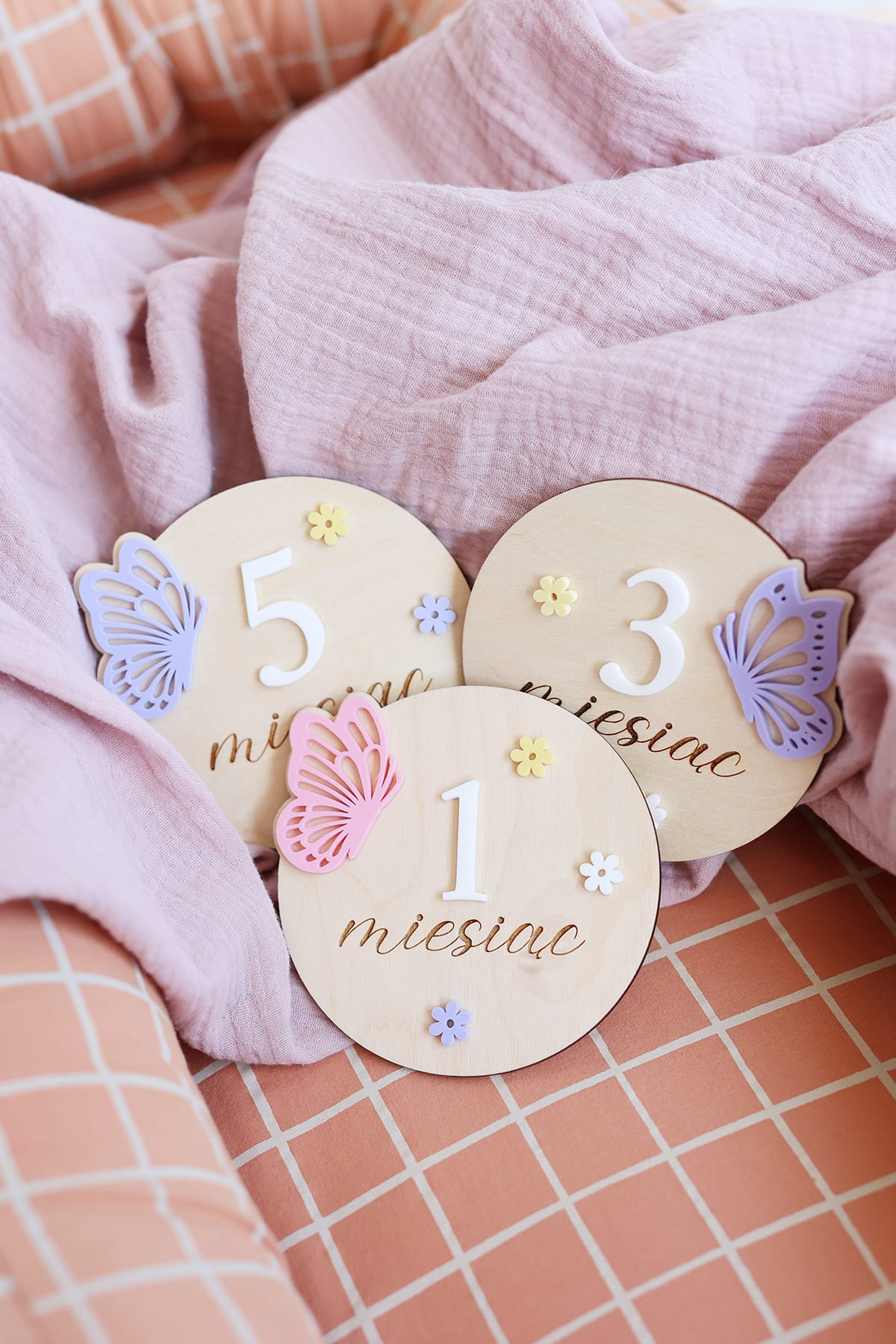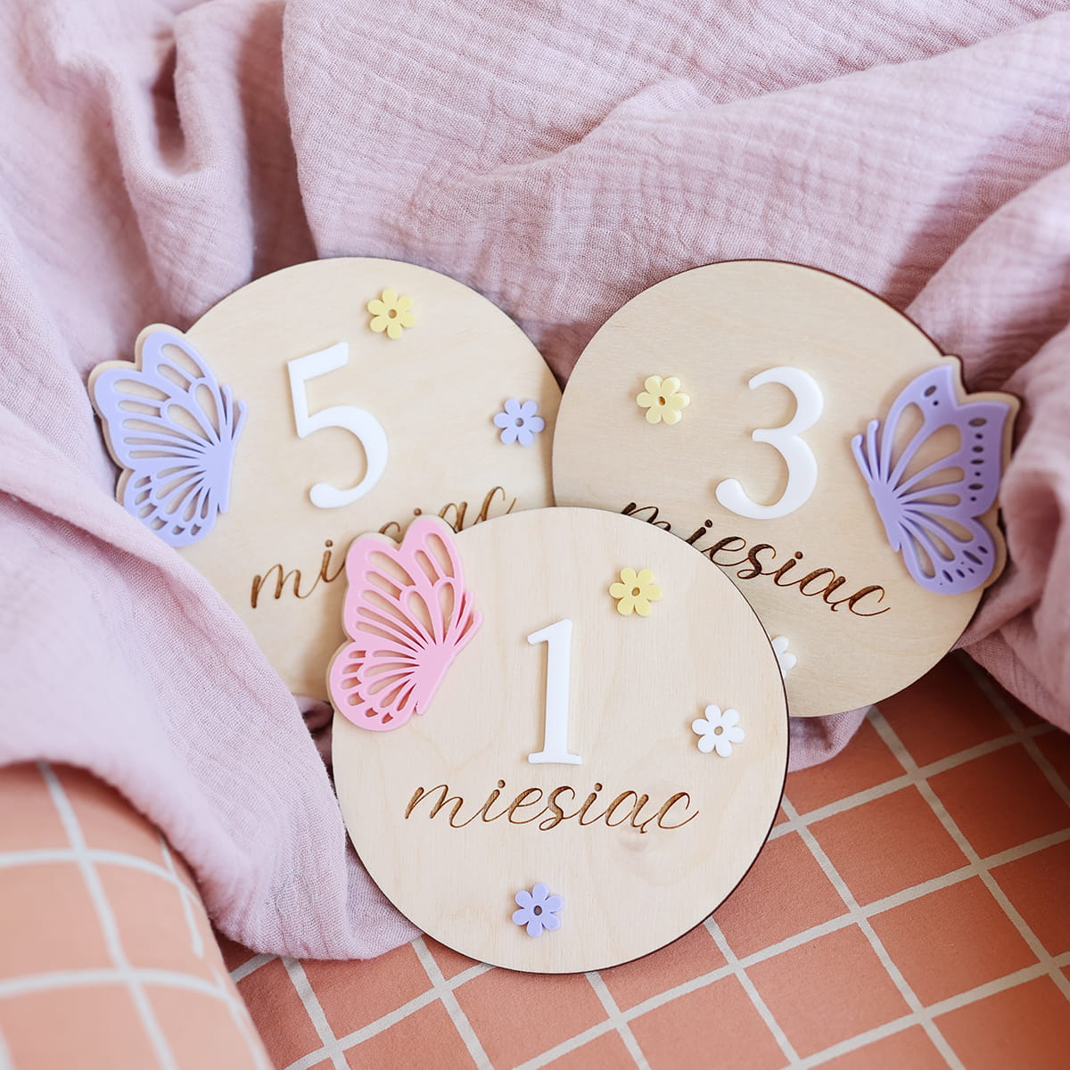 Uchwyć wyjątkowe chwile pierwszego roku życia Twojego maluszka! Zestaw 12 drewnianych tabliczek, każda oznaczona innym miesiącem i ozdobiona motywem motylków, to idealny sposób na dokumentowanie comiesięcznych zmian. Perfekcyjny prezent dla świeżo upieczonych rodziców lub dekoracja do rodzinnego albumu!