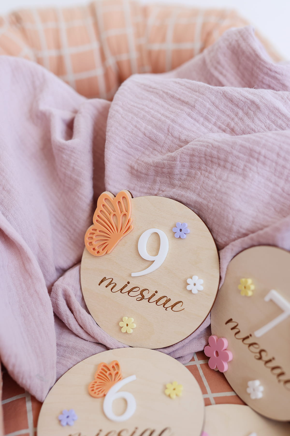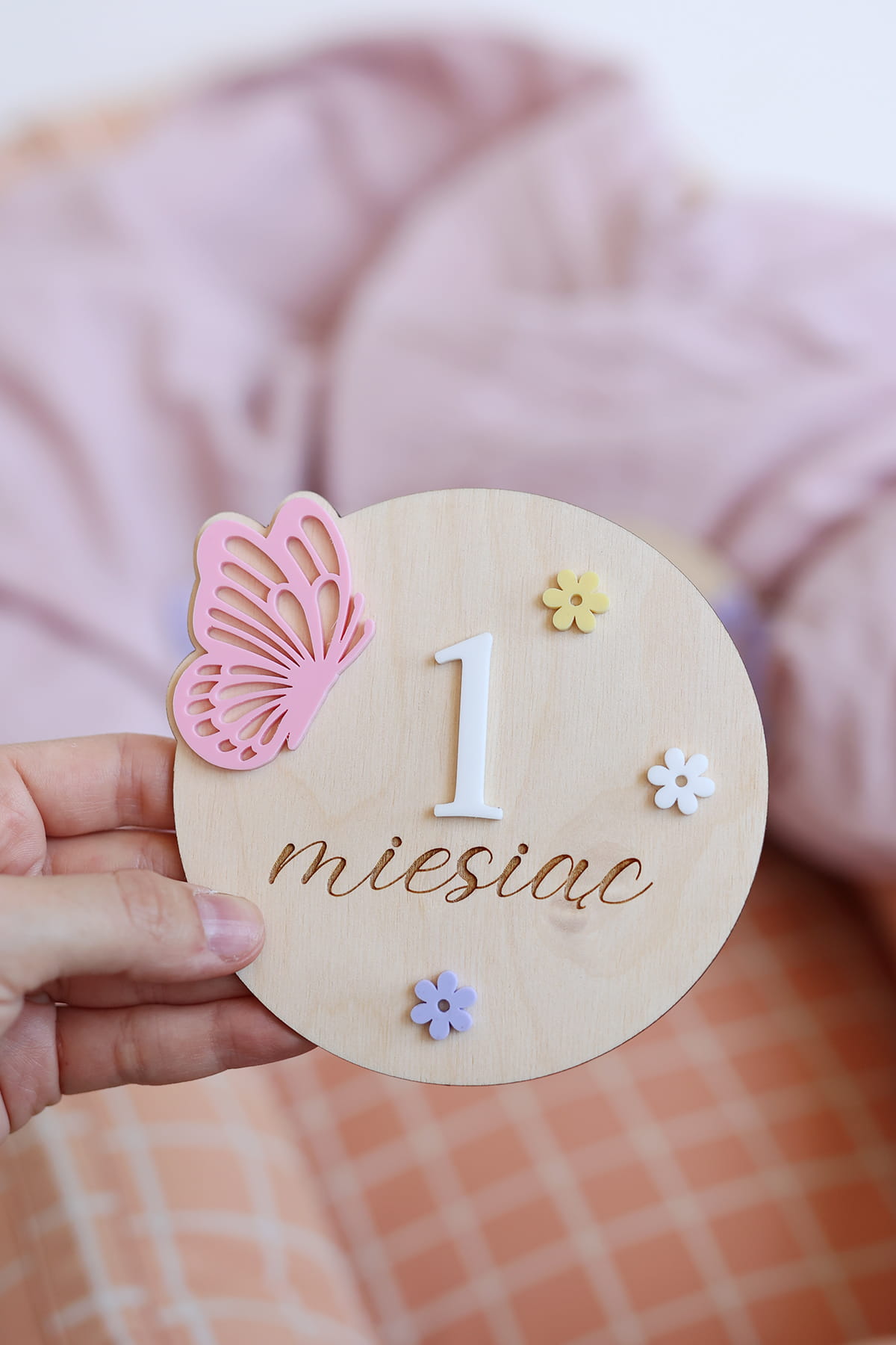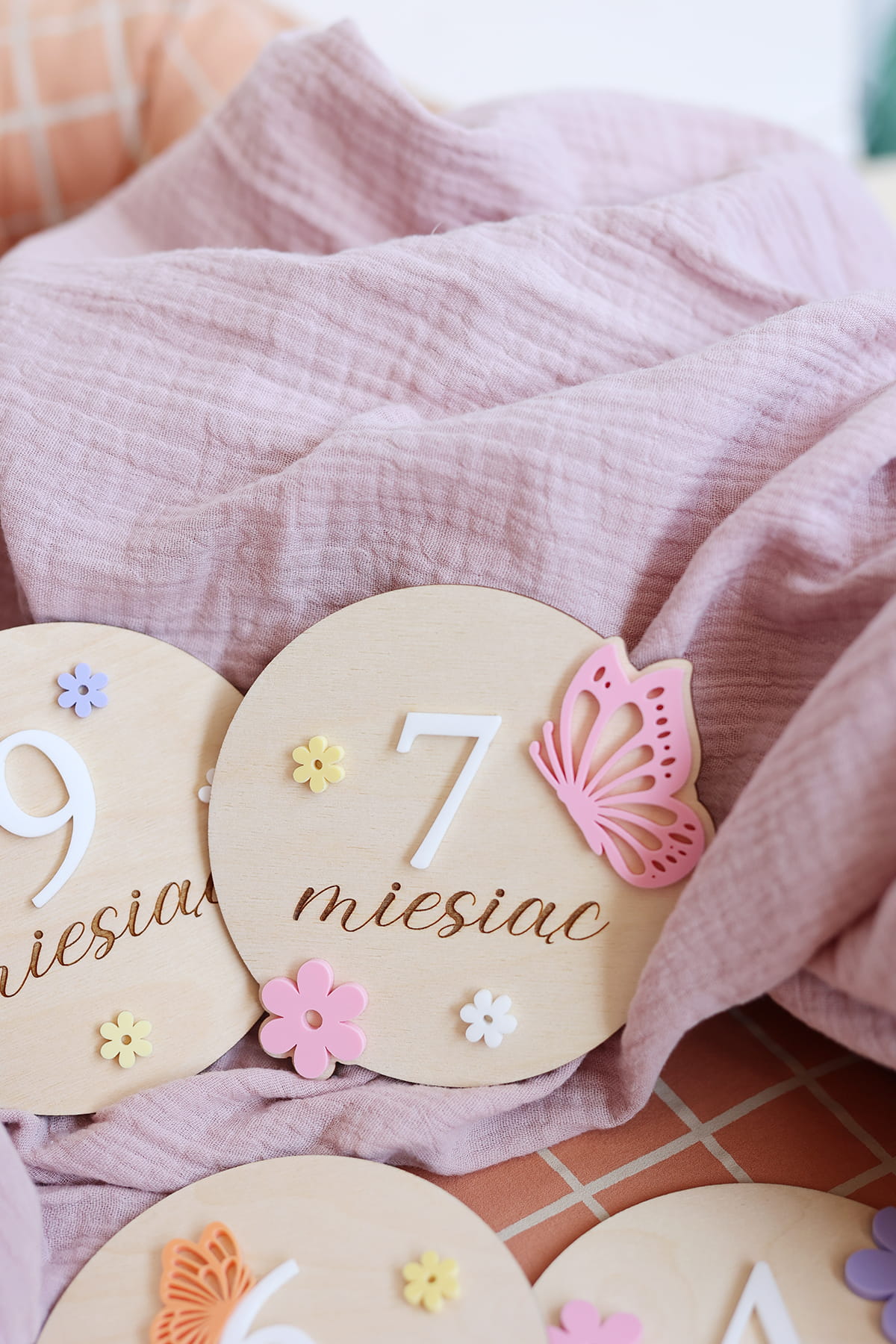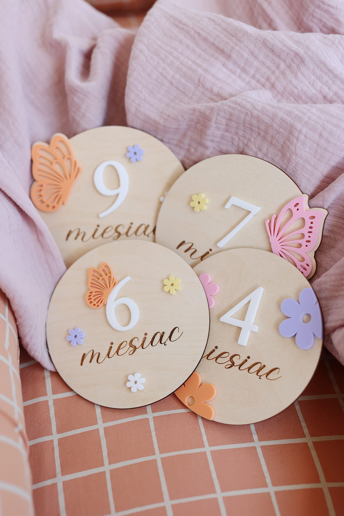 Uchwyć wyjątkowe chwile pierwszego roku życia Twojego maluszka! Zestaw 12 drewnianych tabliczek, każda oznaczona innym miesiącem i ozdobiona motywem motylków, to idealny sposób na dokumentowanie comiesięcznych zmian. Perfekcyjny prezent dla świeżo upieczonych rodziców lub dekoracja do rodzinnego albumu!