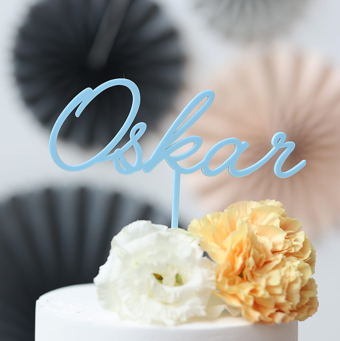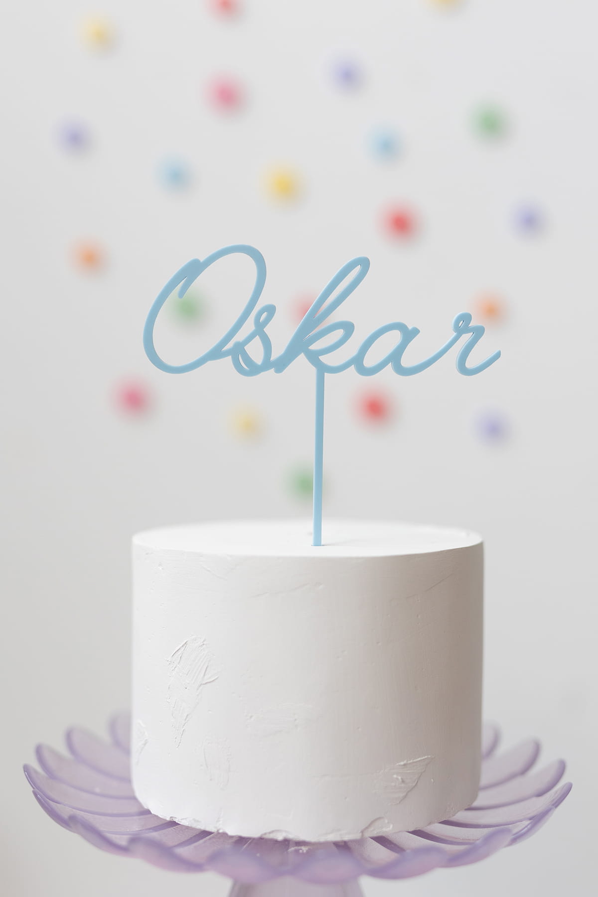 Klasyczny topper z dowolnym jednym imieniem lub słowem, w wybranym kolorze.