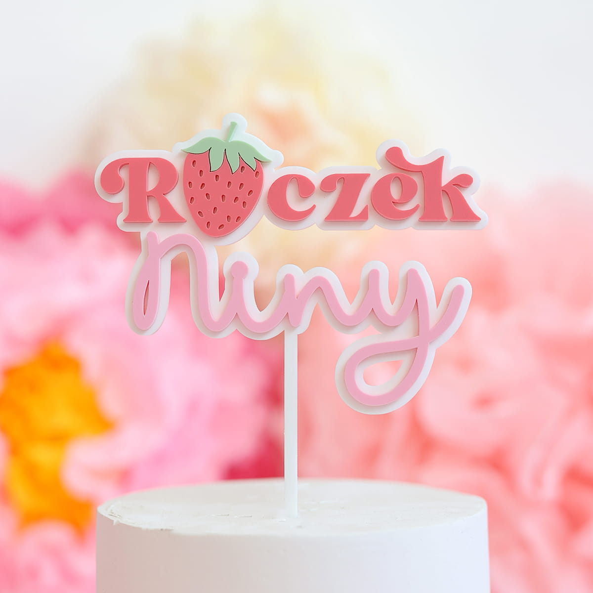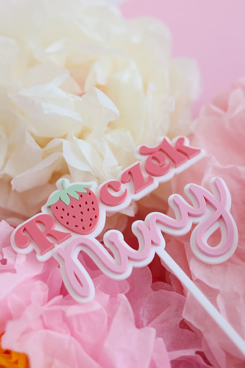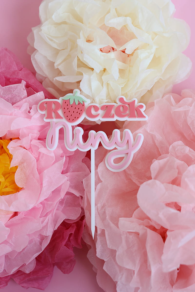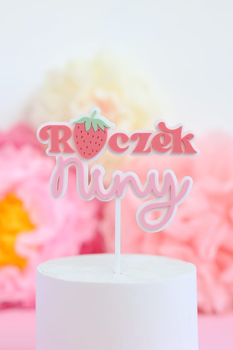 Personalizowany topper na roczek z dowolnym imieniem i motywem truskawki.