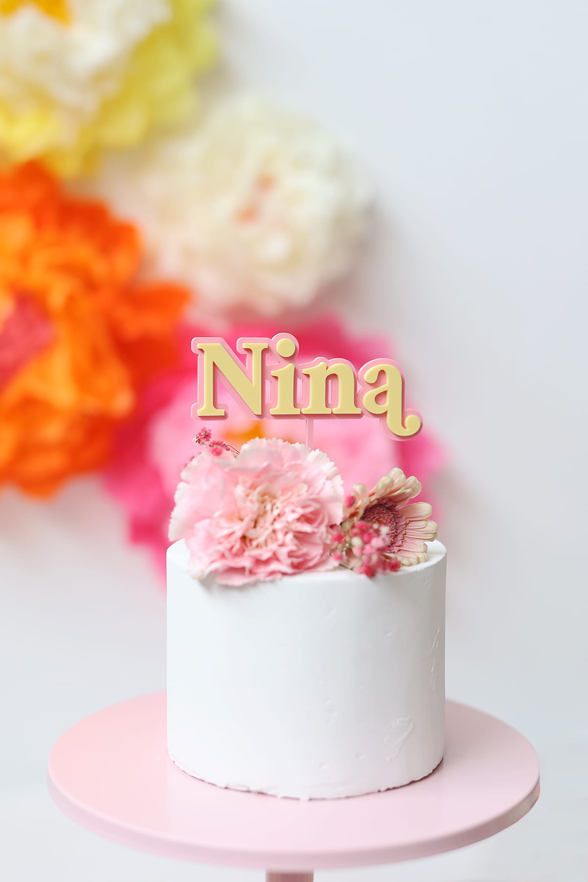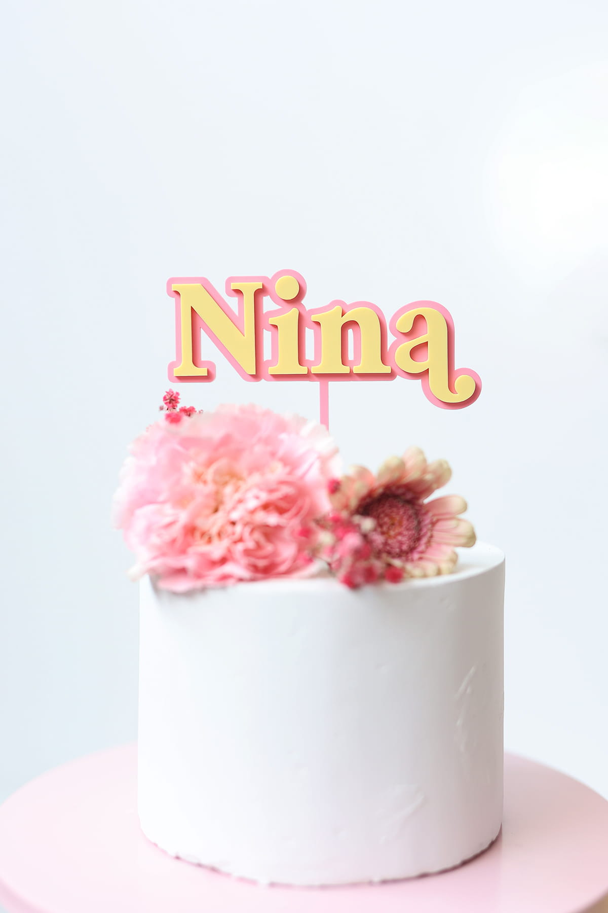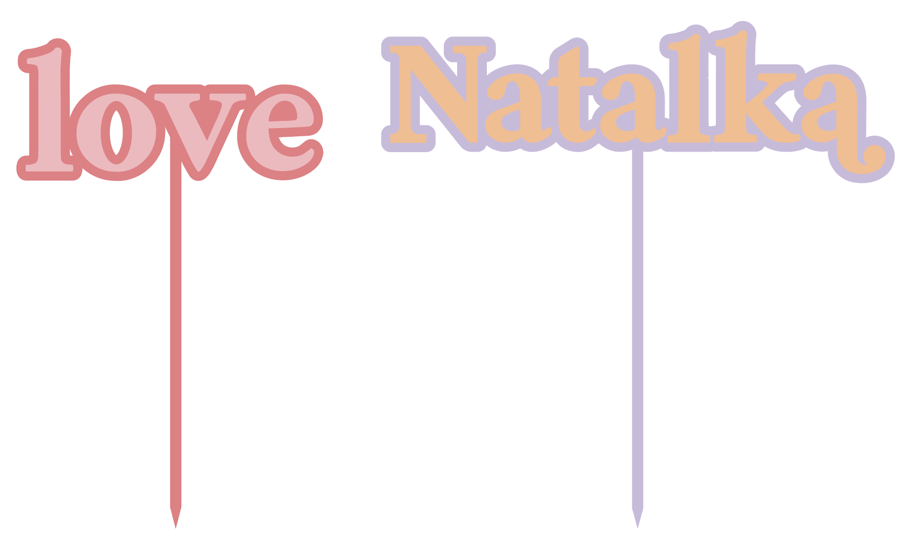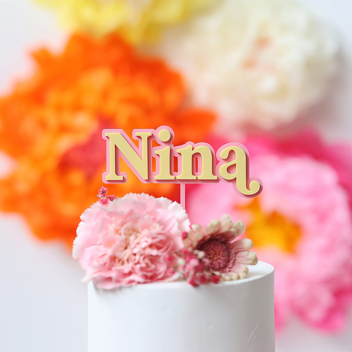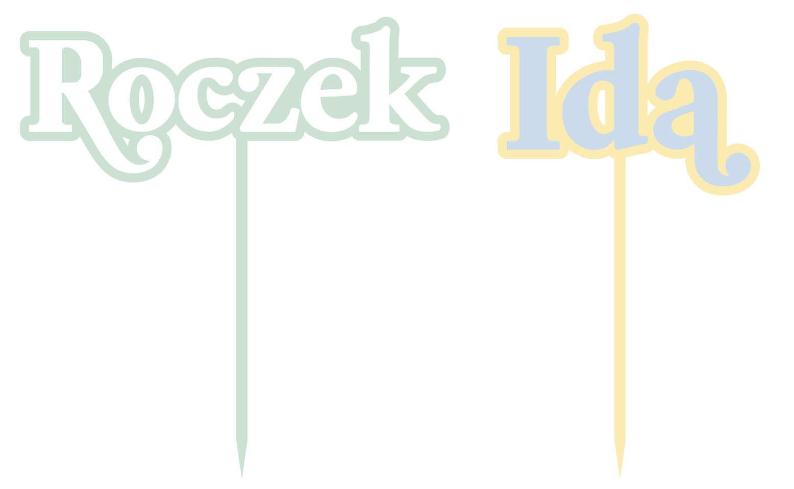 Topper z dowolnym, jednym imieniem lub słowem, składający się z dwóch kolorowych warstw.