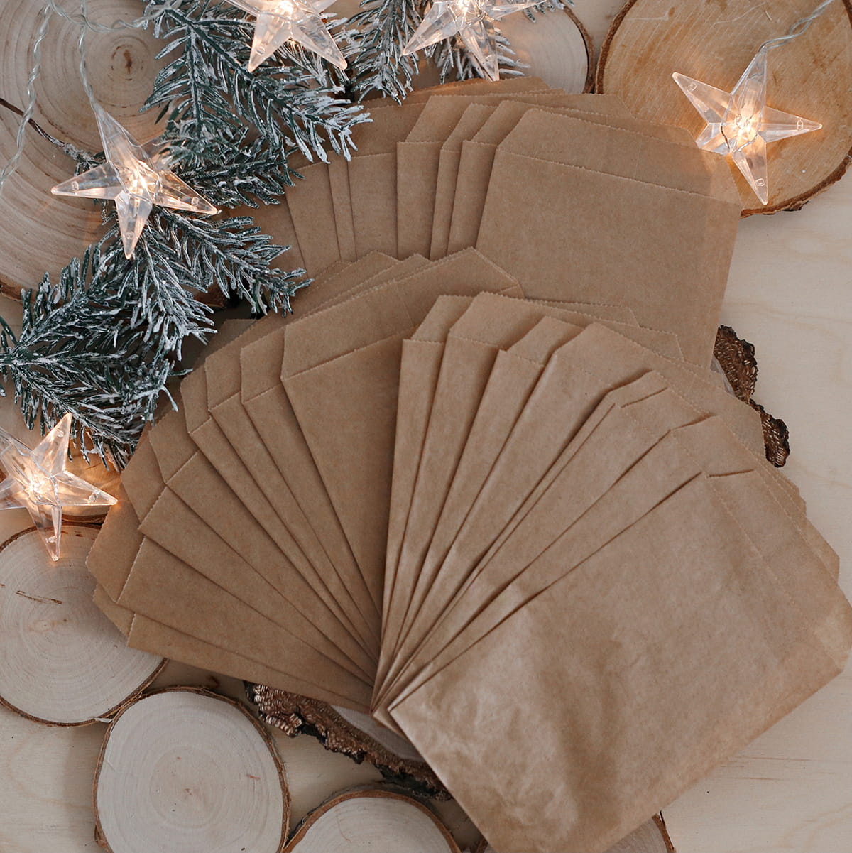 Zestaw 24 małych papierowych torebek (10x17cm) do własnoręcznego przygotowania kalendarza adwentowego.
