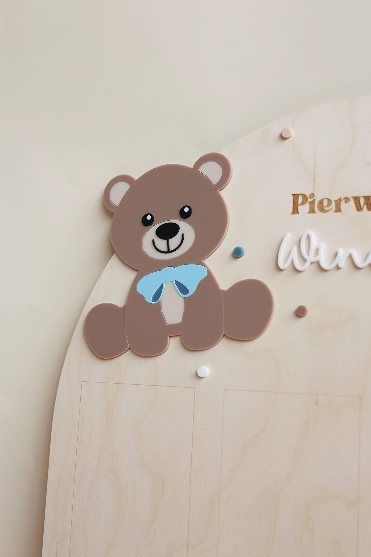 Tablica ozdobiona jest uroczym misiem i urodzinowymi balonikami.